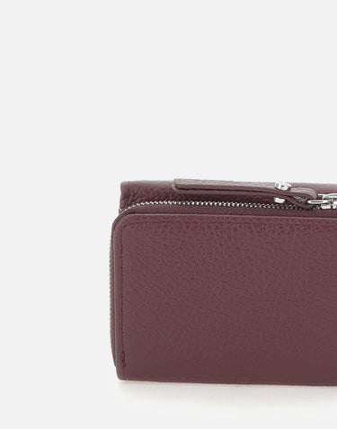 Gianni Chiarini "Wallet grain", wine berry color, small and elegant, soft hammered leather, snap button closure, multiple card slots, external zip pocket for coins, compartments for banknotes, external logo, silver plating. Dimensions: 10x8x2 cm.