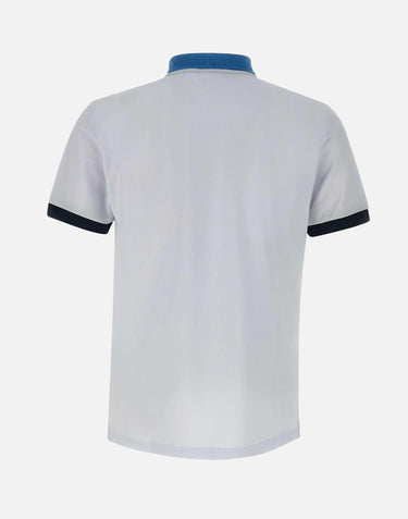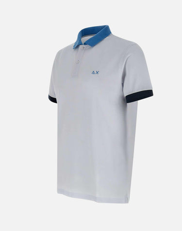 Stretch pique cotton Sun68 "3 color way" men's , white, short sleeves, classic collar closed by matching logo buttons, ribbed edges, contrasting color profiles, mini slits at hem, embroidered logo on chest, regular fit