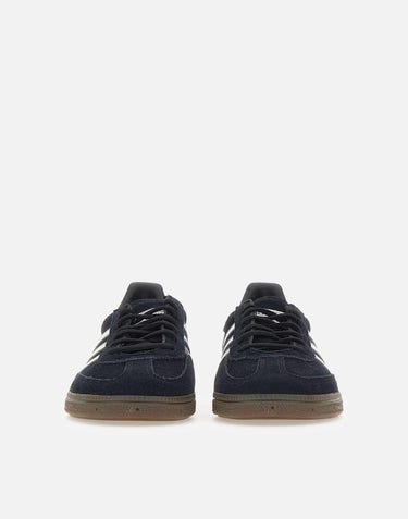 Adidas "Handball Spezial" sneakers, black with iconic metallic silver contrast stripes. Crafted in soft suede, they feature lace-up fastening, logo on tongue, and branded insole. The marbled-effect rubber sole takes inspiration from vintage styles, while 3 cm height and regular fit ensure everyday comfort. Size UK 10 ½ corresponds to EU 45 ?. Refer to the Adidas UK Unisex Footwear Size Chart to find your perfect fit.