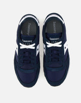 Sneakers Saucony "Jazz Original" in camoscio e nylon, blu con dettagli bianchi, lacci bicolor, logo su linguetta, talloncino bianco logato, bande laterali bianche, suola bicolore in gomma dentellata alta 2,5cm.