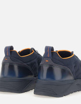 Questa sneakers da uomo in blu navy rappresenta il perfetto equilibrio tra design sportivo e artigianalità di alta gamma. Ispirata al mondo running, si distingue per una silhouette dinamica ma confortevole, con una calzata accogliente e slanciata. La tomaia è arricchita da inserti in pelle pregiata e da lacci elastici incrociati, che coniugano estetica e praticità. La suola alta in gomma assicura ammortizzazione e aderenza, rendendo questa sneaker ideale per luso quotidiano con un tocco sofisticato. Made in Italy.