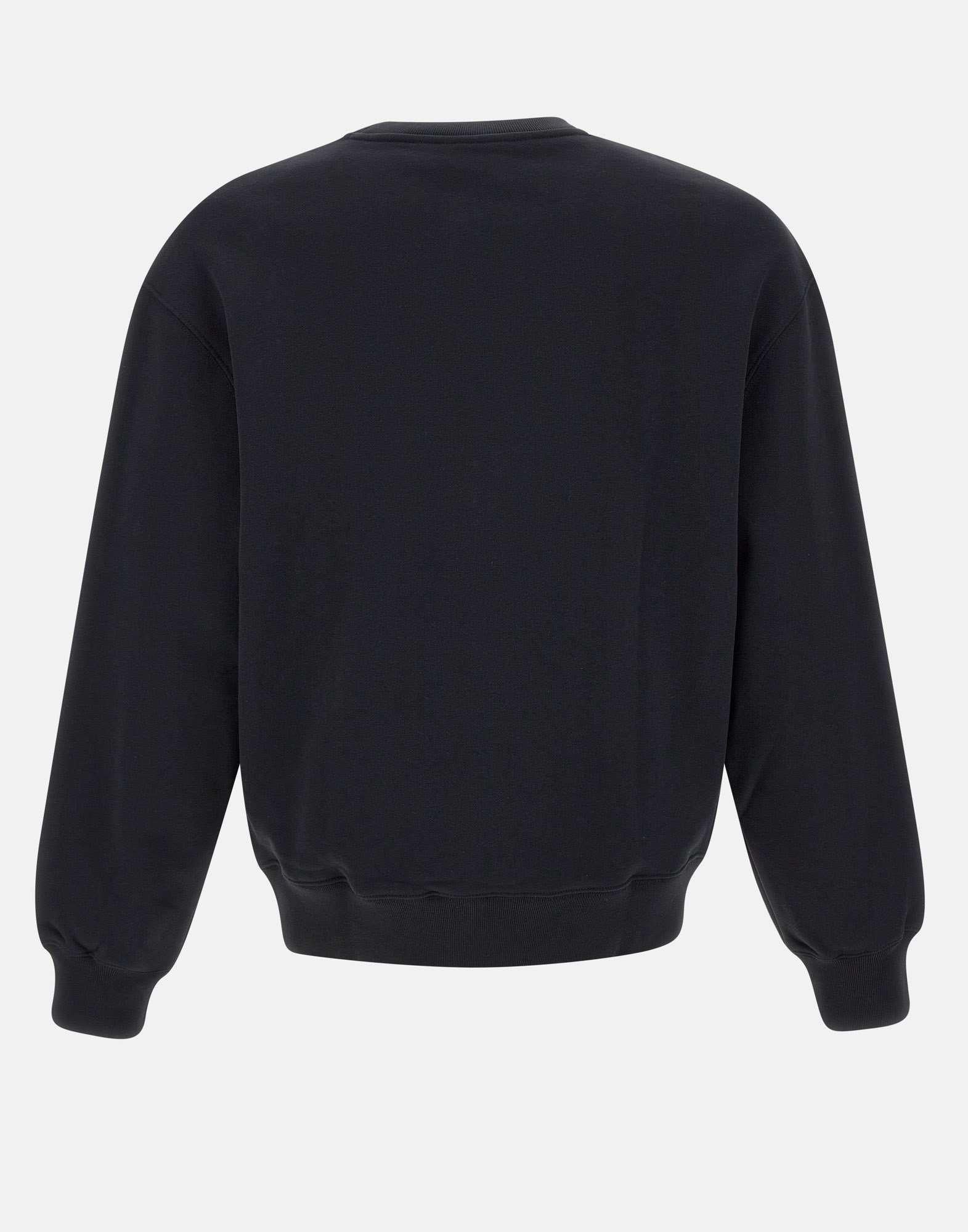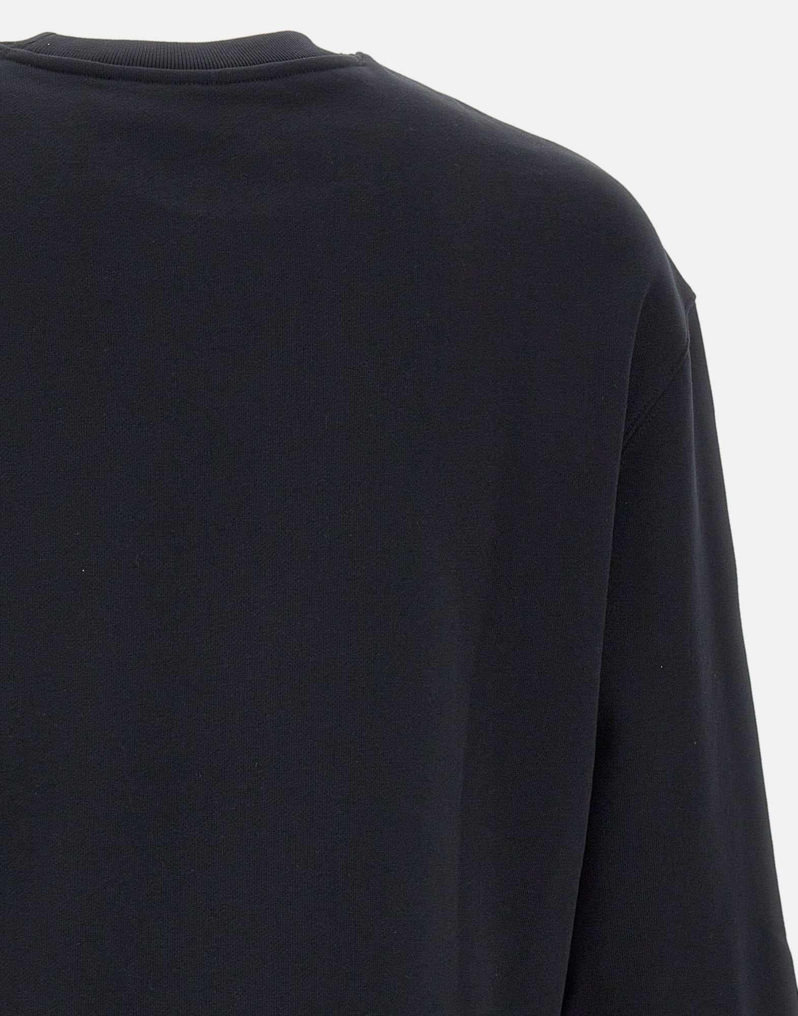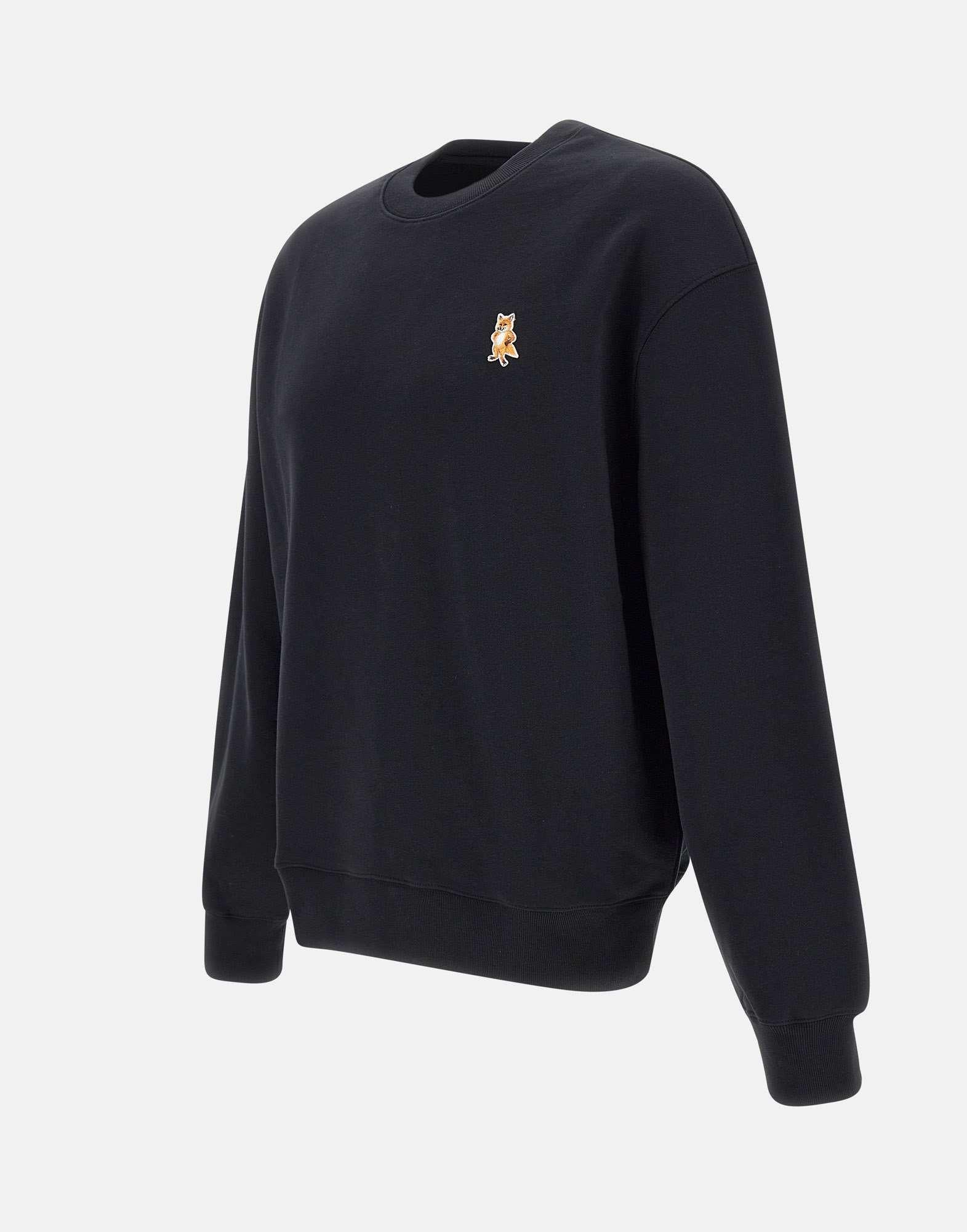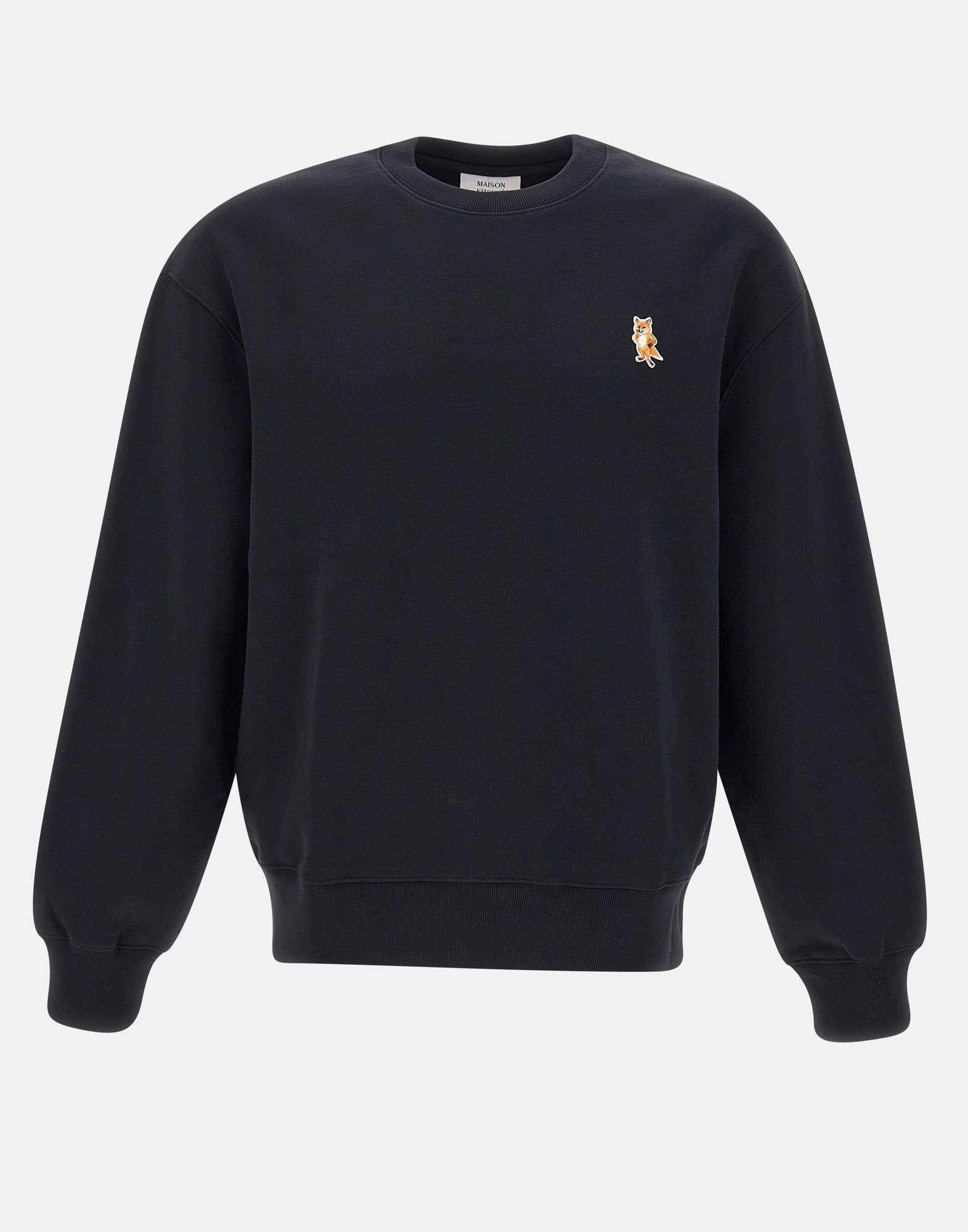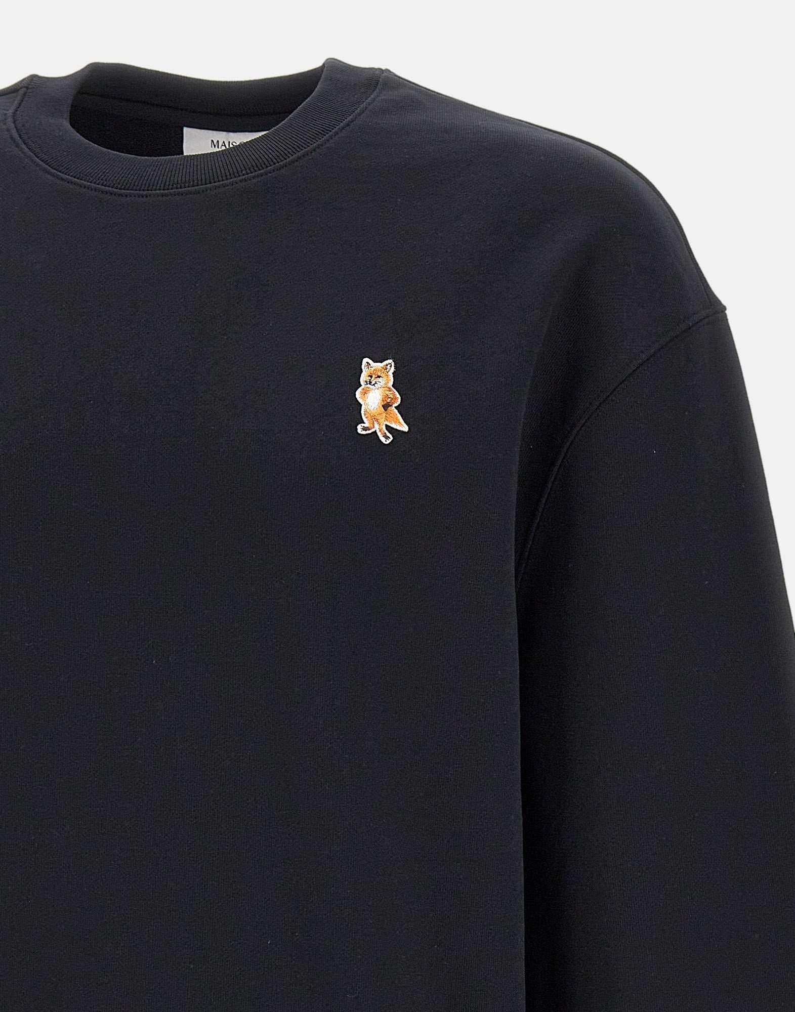 "Dressed fox comfort sweatshirt" men's Maison Kitsunè, black color, simple cotton fleece, brushed interior, ribbed edges, long sleeves, crew neck, multicolor embroidered logo on chest, comfortable fit.