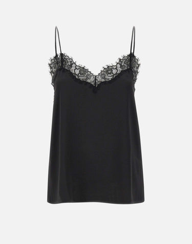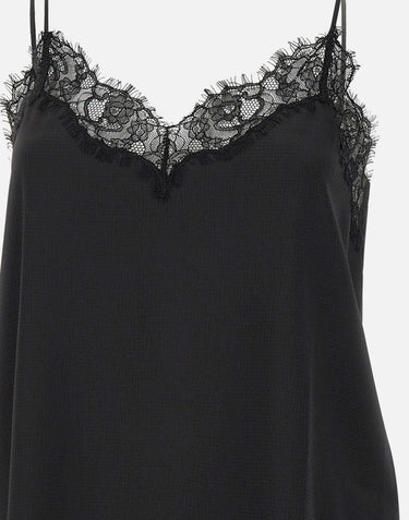 Womens Boss "C-Ilessy" top Boss Women Orange collection, crafted in black satin with lace inserts. Features flared hem and adjustable slim straps for a comfortable and versatile look. Regular fit.