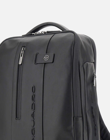 Piquadro "Blu Square" leather backpack, black, two large compartments closed by zip, fixed shoulder pad,