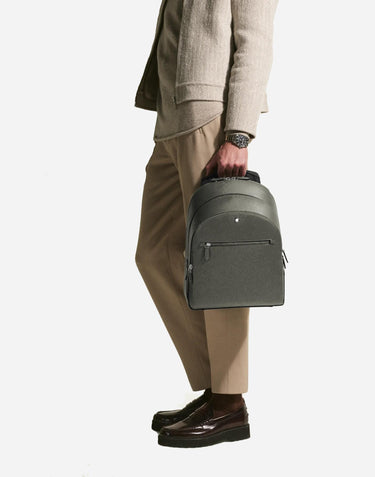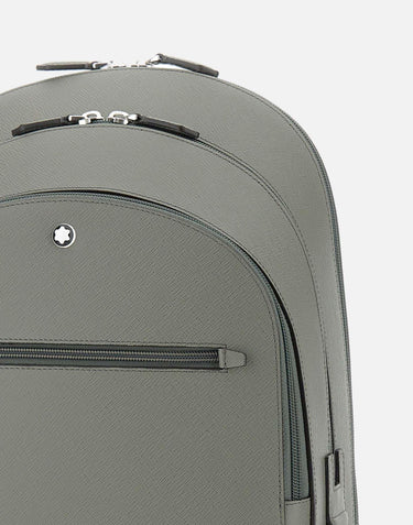 Montblanc "Sartorial" men's backpack, grey, three compartments closed by two-way zip, full-grain Saffiano print leather, polyamide and cotton lining, adjustable and padded shoulder straps, iconic logo on front, can hold a 13-inch laptop, super roomy and comfortable for everyday life and business trips, dimensions: height 40cm, length 30cm at base, 12cm depth