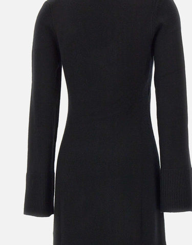 Loulou de Saison "Ari" long sweater in black cashmere and wool blend. Features long sleeves, deep round neckline, and ribbed trims. Regular fit for a chic and versatile look.