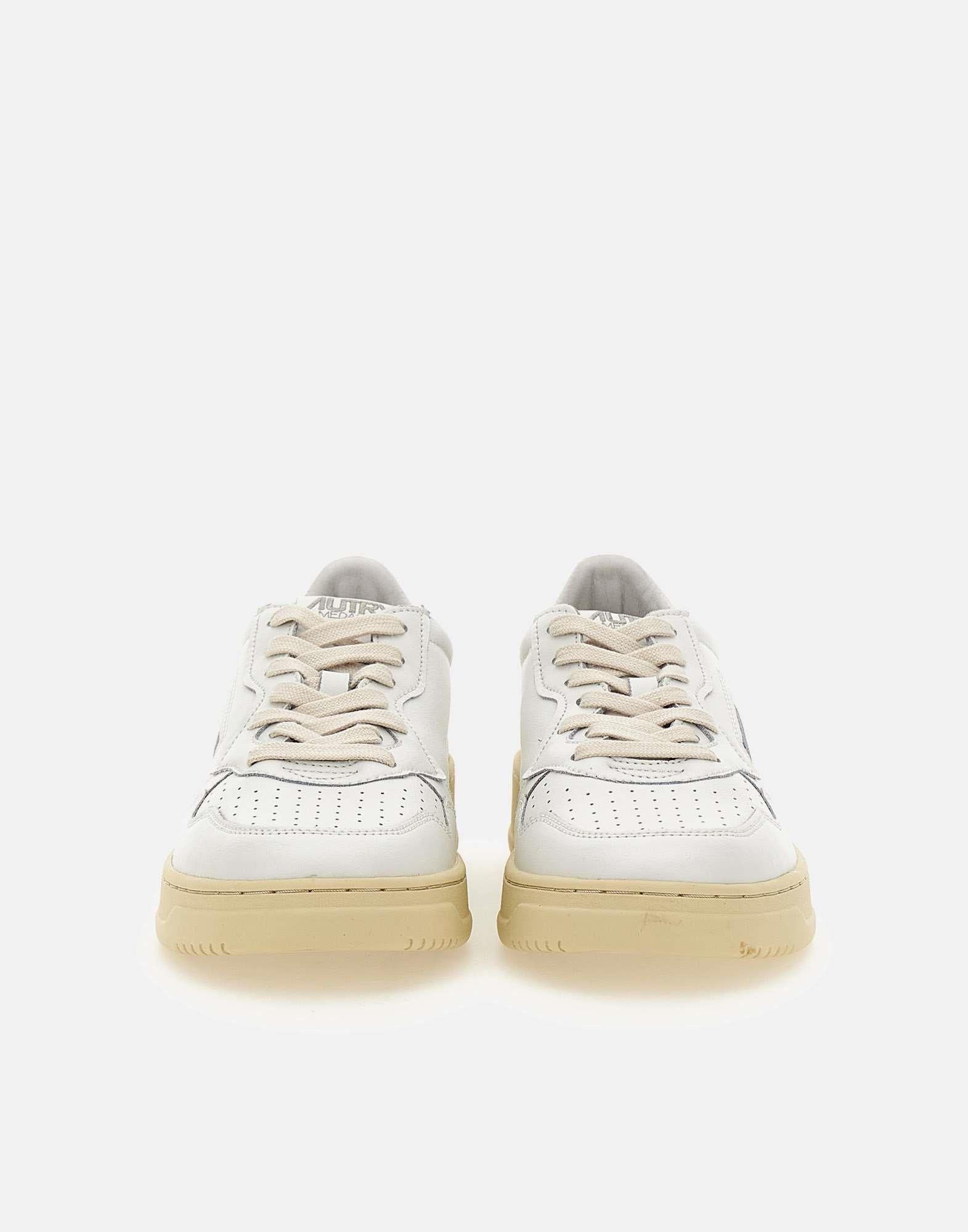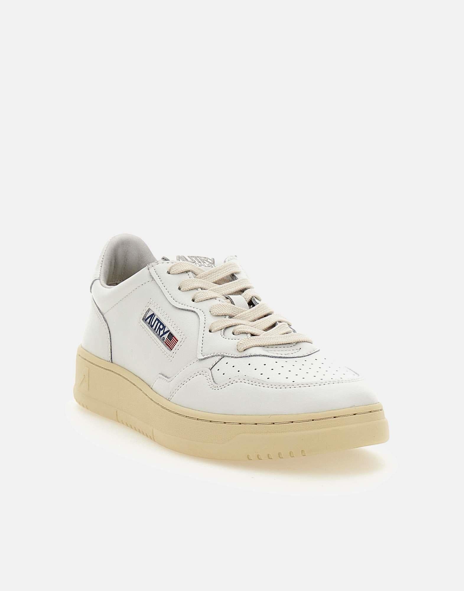 Autry "AULM LL15" men's leather sneakers, total white, 80s design, flat laces, embossed logo on the tongue and on the back, iconic side flag, internal lining in cotton and sponge, perforated toe to promote breathability, sole in rubber with logo, 4cm high. Case included. Regular fit.