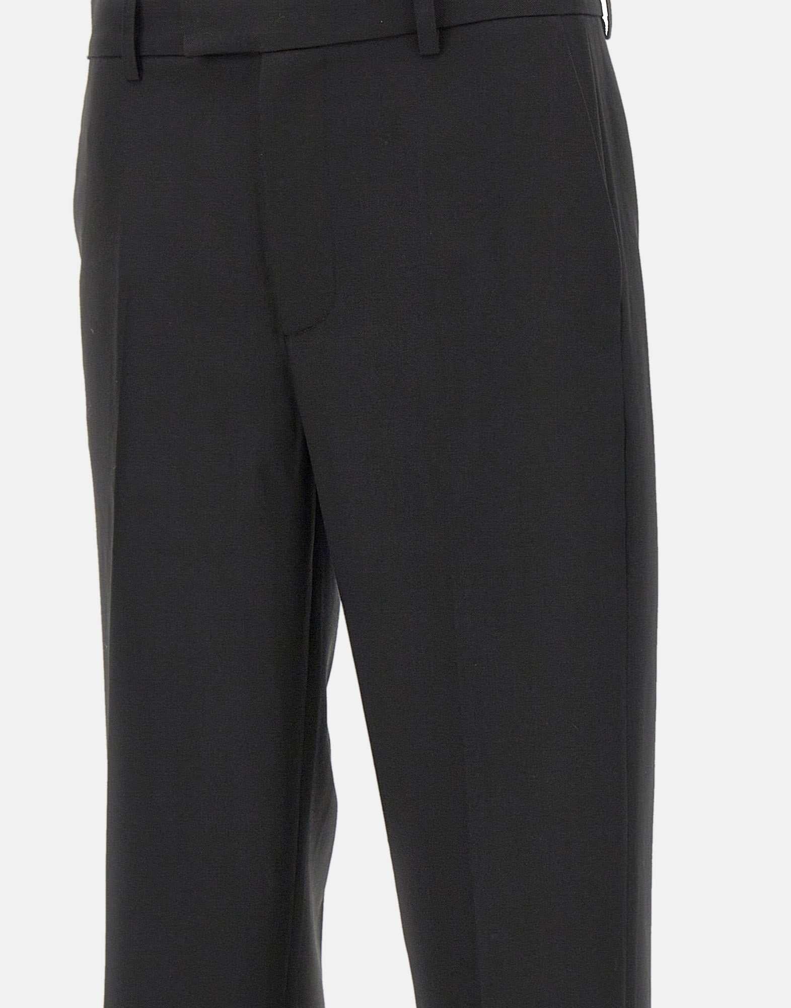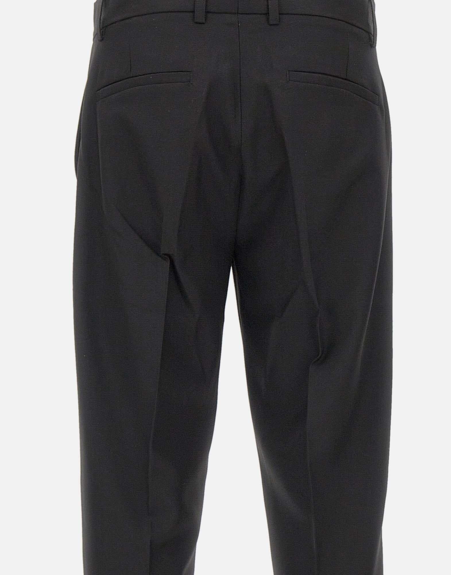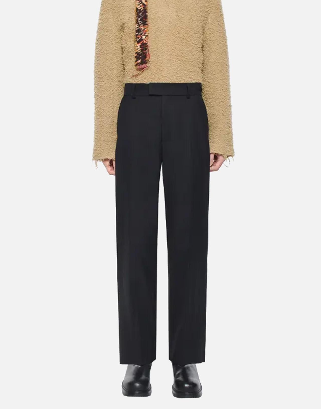 Séfr men's "Mike Suit" trousers in black, crafted from a lightweight Bulgarian wool blend for a refined and comfortable look. They feature a pressed crease, front welt pockets, belt loops, and a hook and zip closure. The straight leg with a 23 cm hem accentuates the silhouette, ensuring a clean and versatile style. Regular fit.
