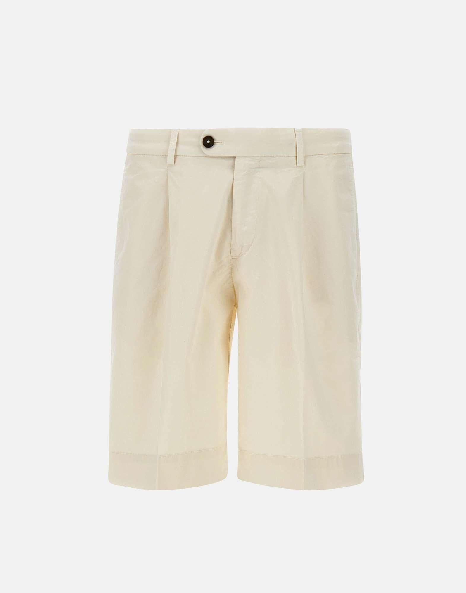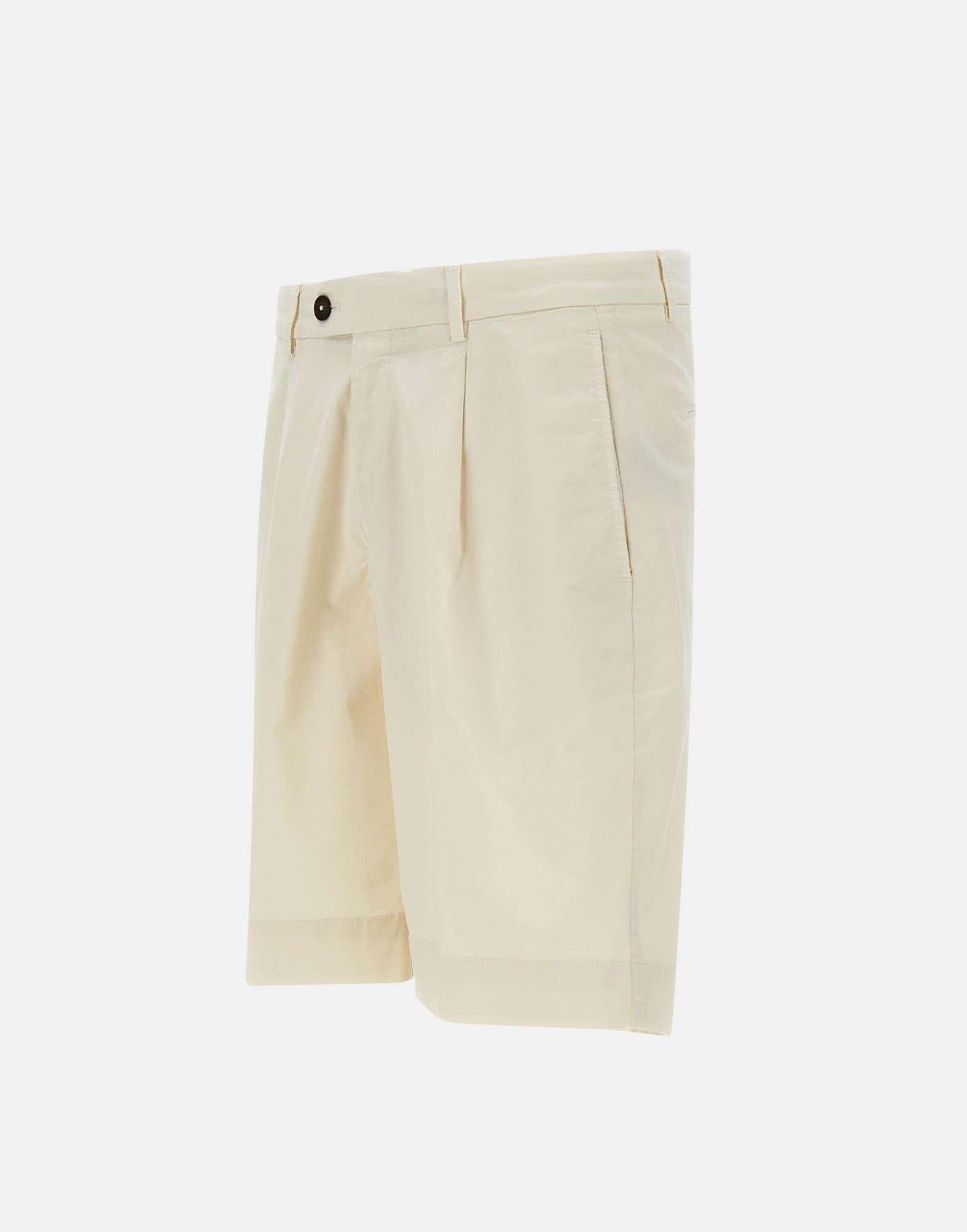 Devorè Incipit "D105g fit amalfi" men's shorts, cream, extra comfortable stretch cotton fabric to touch and to wear, regular waist with belt loops, French side pockets, single pleat on front, button and zip fastening, back pockets, regular fit.