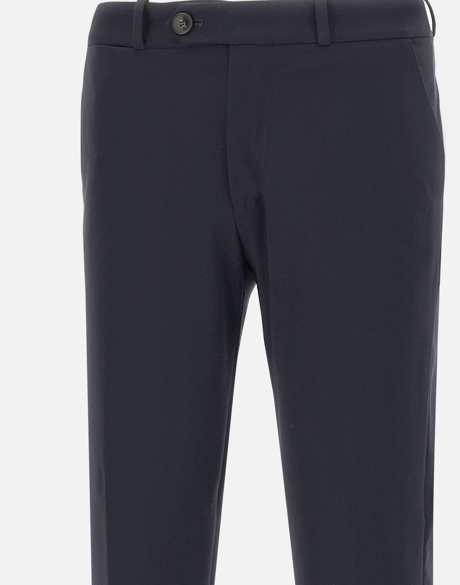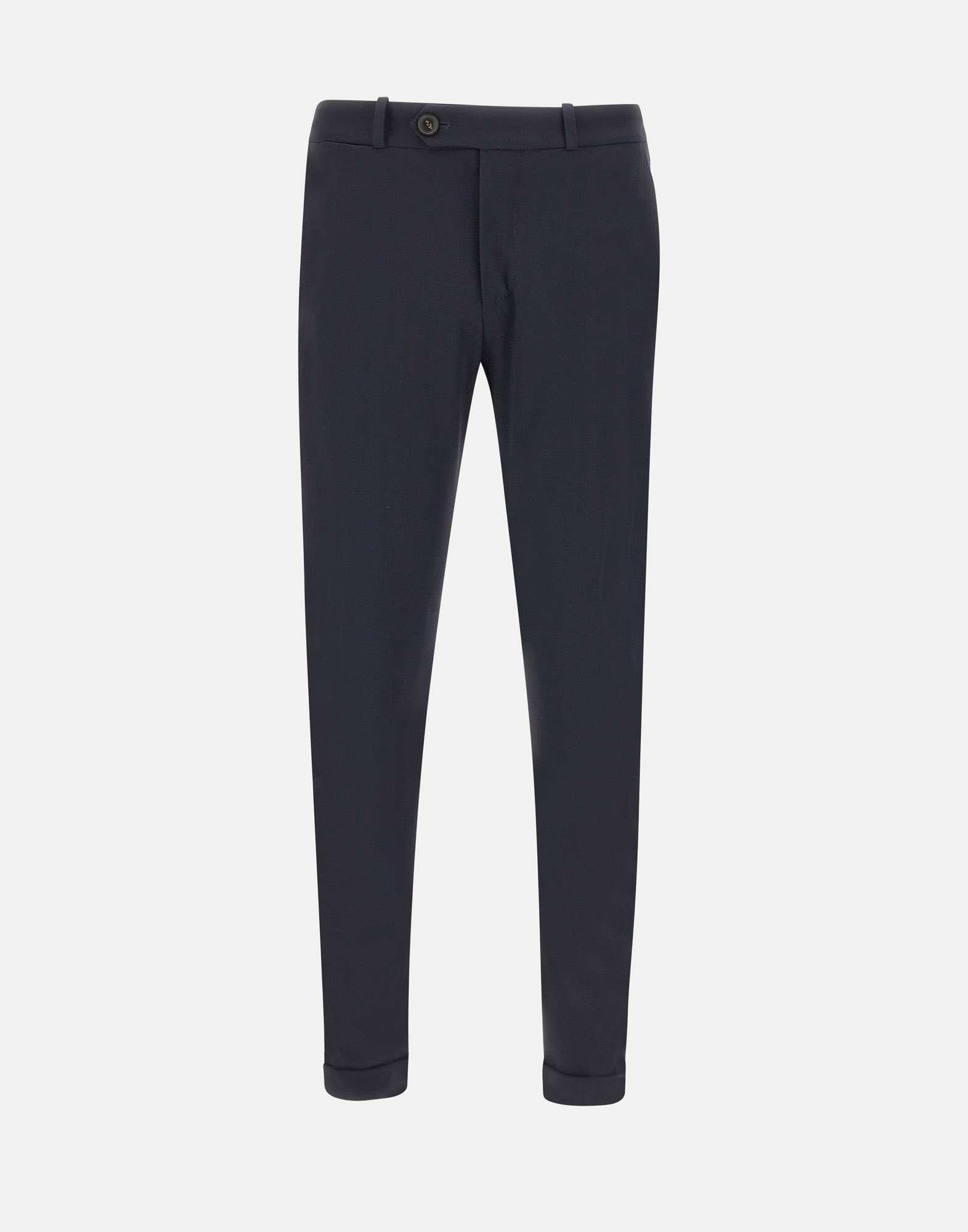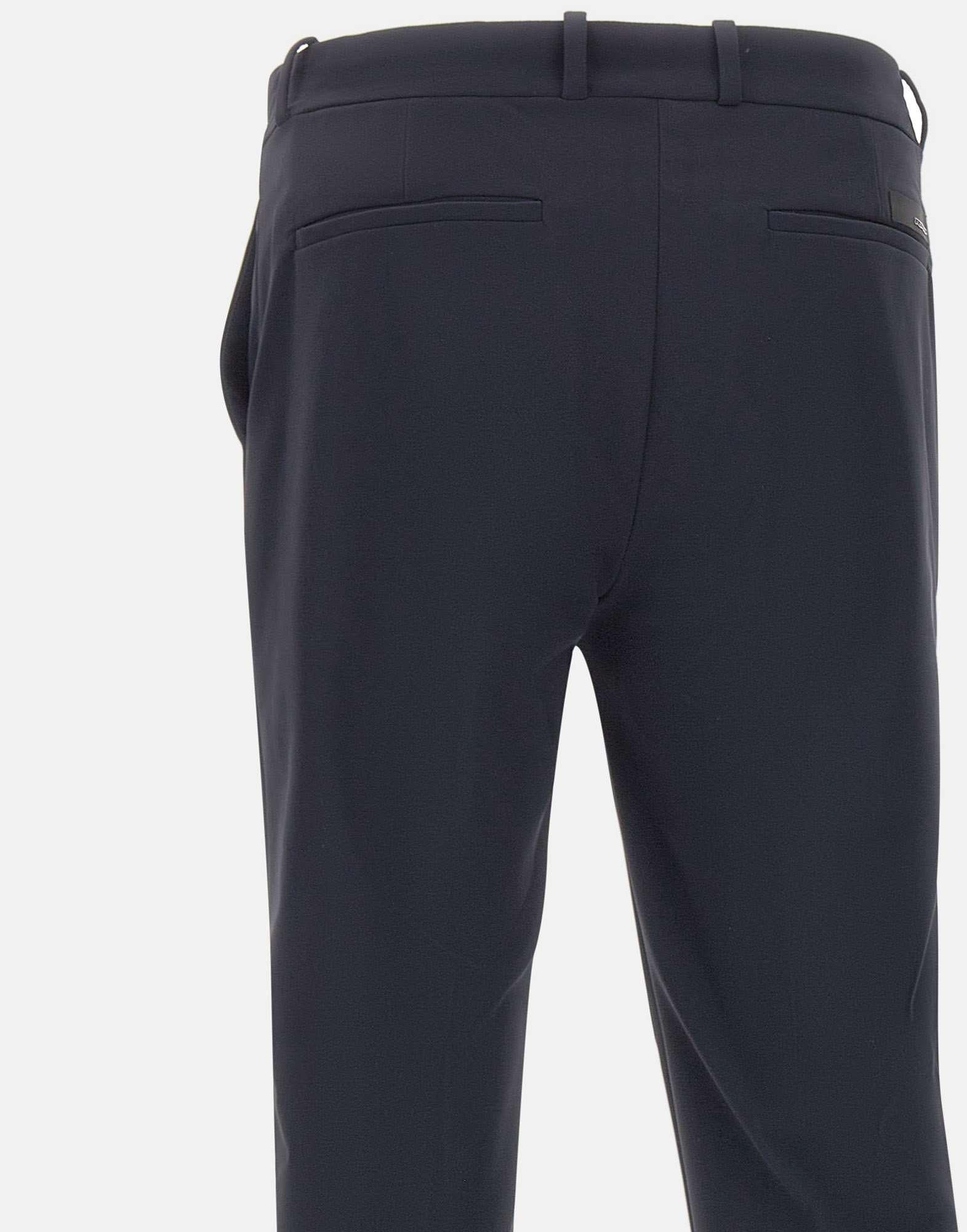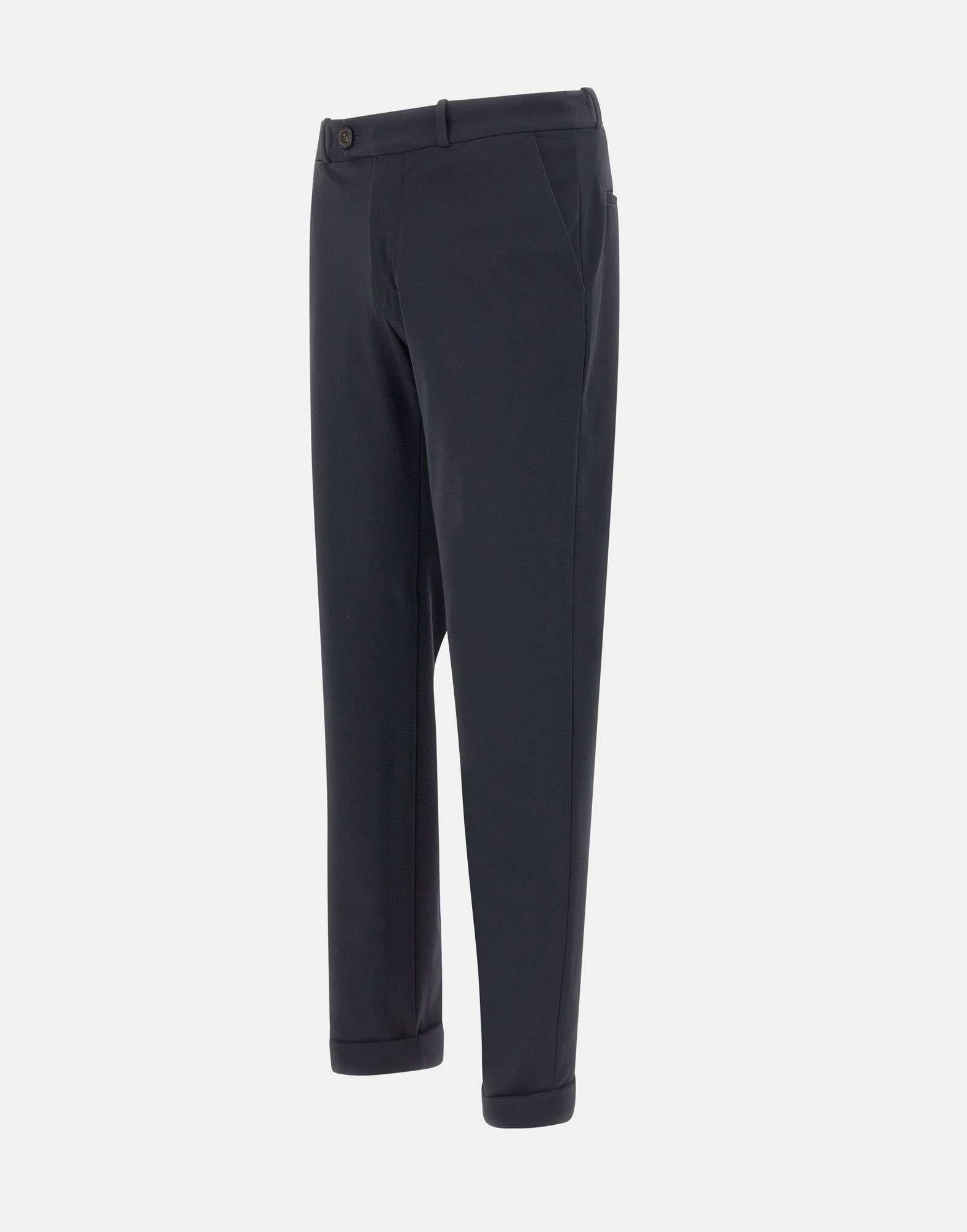 RRD men's "Surflex Winter Chino Pant", blue, winter chino made with exclusive SURFLEX stretch fabric, anti-crease, non-iron and characterised by an extraordinarily smooth hand, super matte finish, medium waist with belt loops, zip and natural horn button fastening, interior with iconic Monogram Razzle Dazzle print black, French pockets, back welt pockets, black micro-injected logo, 17cm leg bottom and 3cm turn-up, slim fit