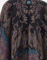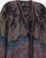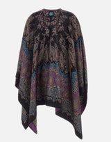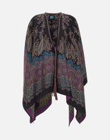 Etro cape made of wool, silk and modal blend diagonal, multicolor placed floral Paisley pattern, lace-up closure completed with two tassels at hem, over fit, made in Italy, one size fits all