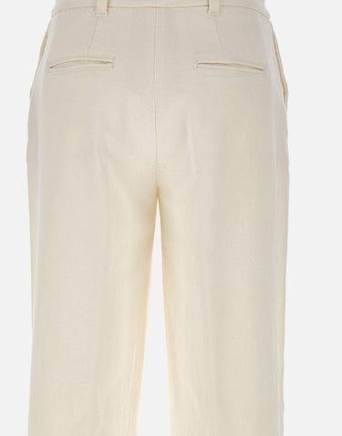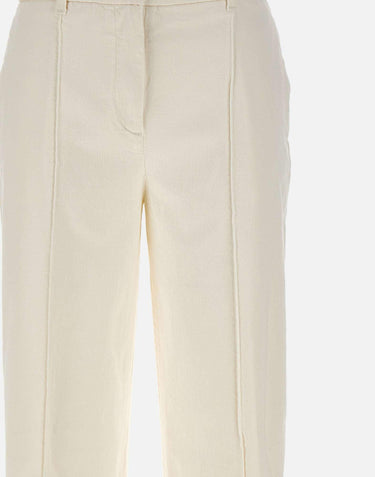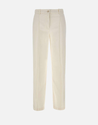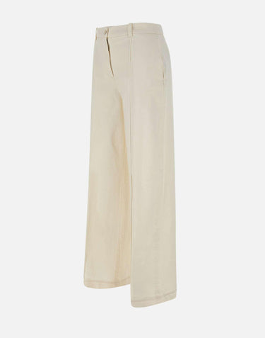 Eleventy women's stretch wool and cashmere trousers, cream, zip and button fastening, pressed pleat, side welt pockets, belt loops, back pockets, wide and straight leg with 26cm bottom, regular fit, made in Italy