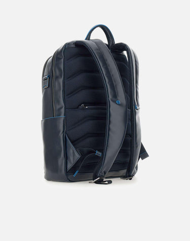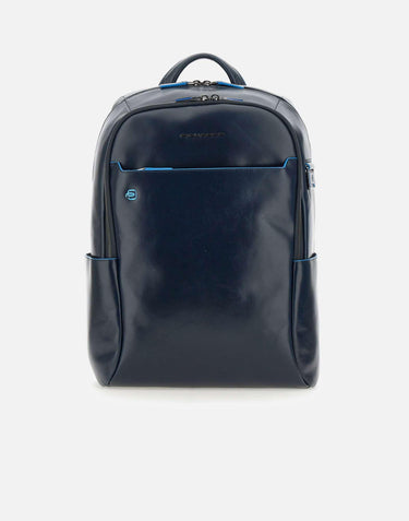 Piquadro Blue Square men's leather backpack, blue, 15.6 laptop holder, Shock Absorber, iPad® 10.2Air 10.9Pro 11 holder, zippered closure, two compartments, inside pockets, front pocket, embossed front logo, adjustable shoulder straps, liter 20, polyester lining, weight 1062gr, measurements: height 43cm, width 32cm, depth 14cm.