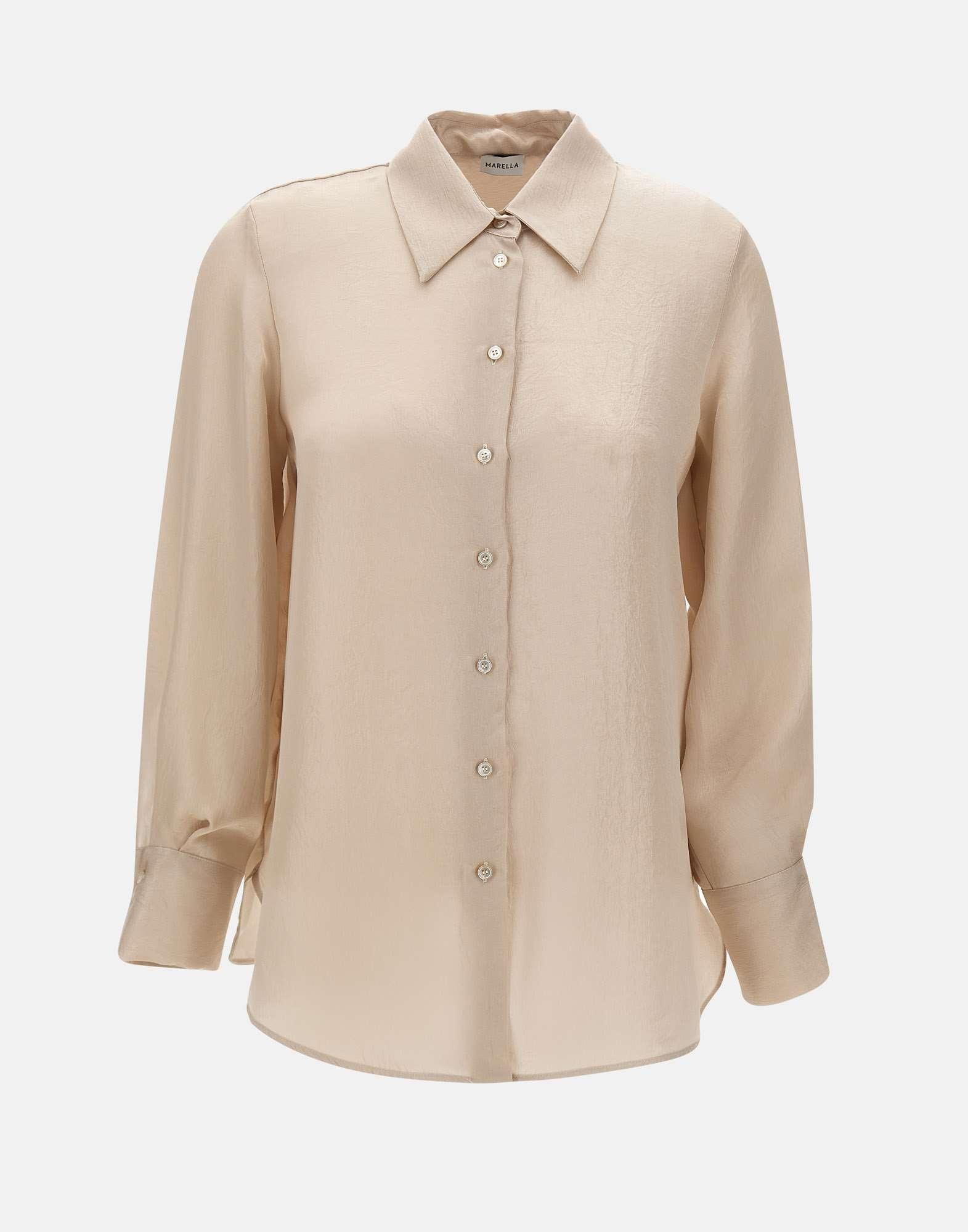 Marella "Lirico" shirt, ivory, extra comfortable crepe effect fabric, long sleeves, classic collar, mother-of-pearl button fastening, buttoned cuffs, rounded sides at hem, relaxed fit