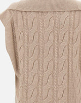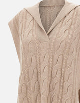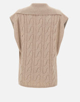 Max Mara Studio "Tirsi" vest in hazelnut wool and cashmere blend. Features polo high collar, dropped shoulders and side slits for a soft silhouette. Relaxed fit, perfect as a refined layering piece.