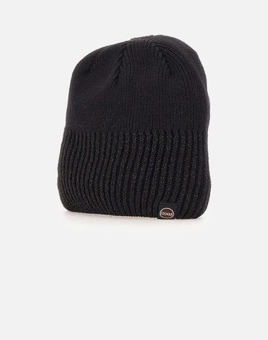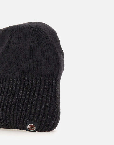 Colmar Originals "Luxor" women's hat, black, wool and nylon blend with lurex yarn, mini logo label, one size, made in Italy