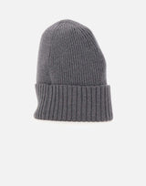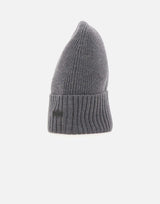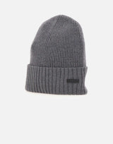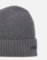 Berretto uomo Boss "Fati" in lana, colore grigio, trama a coste, risvolto con mini etichetta logo, taglia unica.