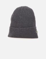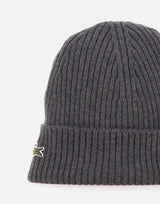 Berretto uomo Lacoste, realizzato in morbida lana con lavorazione a coste nella tonalità grigia.