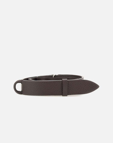 Orciani "Nobukle Micron" men's dark brown textured leather belt, innovative design and functionality, without buckle, without holes, one size adjustable from 42 to 56,sliding ring, palladium finish,