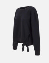 Women’s Boss "Essega" sweatshirt, crafted from a soft cotton and lyocell blend with a brushed interior. Linea Boss Women Black, presented in black, it features long sleeves, a crew neckline, and glossy trims that elevate its sporty elegance. A distinctive bow with cut-out detail at hem is enriched by embroidered Double B monogram. Standard length with a relaxed fit for sophisticated comfort.