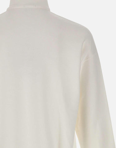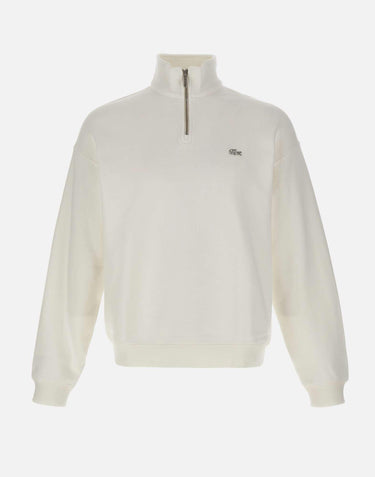 Lacoste sweatshirt in recycled organic cotton, white. Long-sleeved crewneck design with high collar, zip fastening and branded metal puller. Finished with ribbed trims, brushed interior, dropped shoulders and the iconic tone-on-tone embroidered crocodile with black stitching on the chest. Loose fit for a casual and contemporary look.