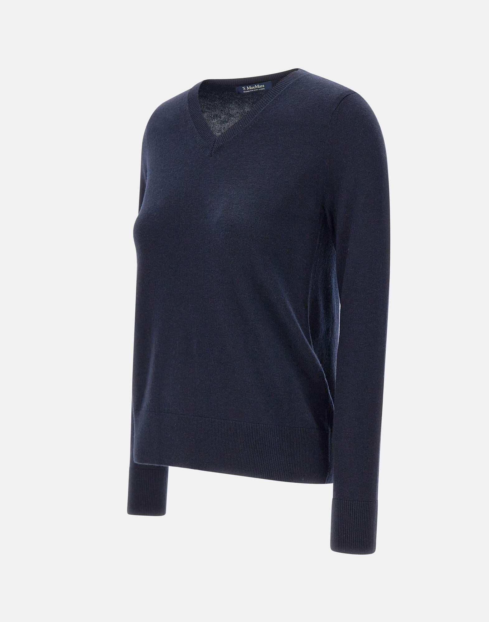 'S Max Mara "Idoneo" sweater, blue, pure wool yarn, long sleeves, ribbed edges, straight cut, V-neck, regular fit