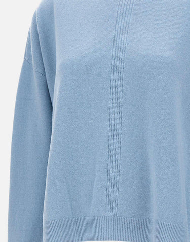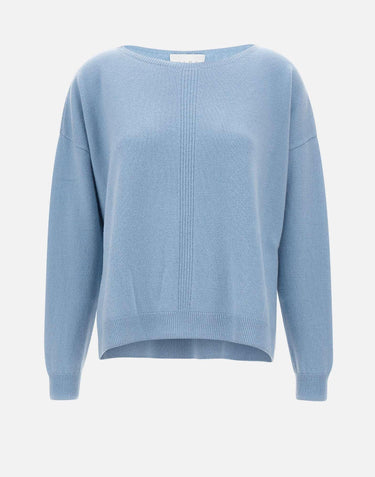 Womens Kaos sweater crafted wool in a light blue shade. The minimal design features long sleeves, a boat neckline, and raglan shoulders for a fluid silhouette. Ribbed trims and side slits at the hem complete the piece with a casual yet refined touch. Relaxed fit.