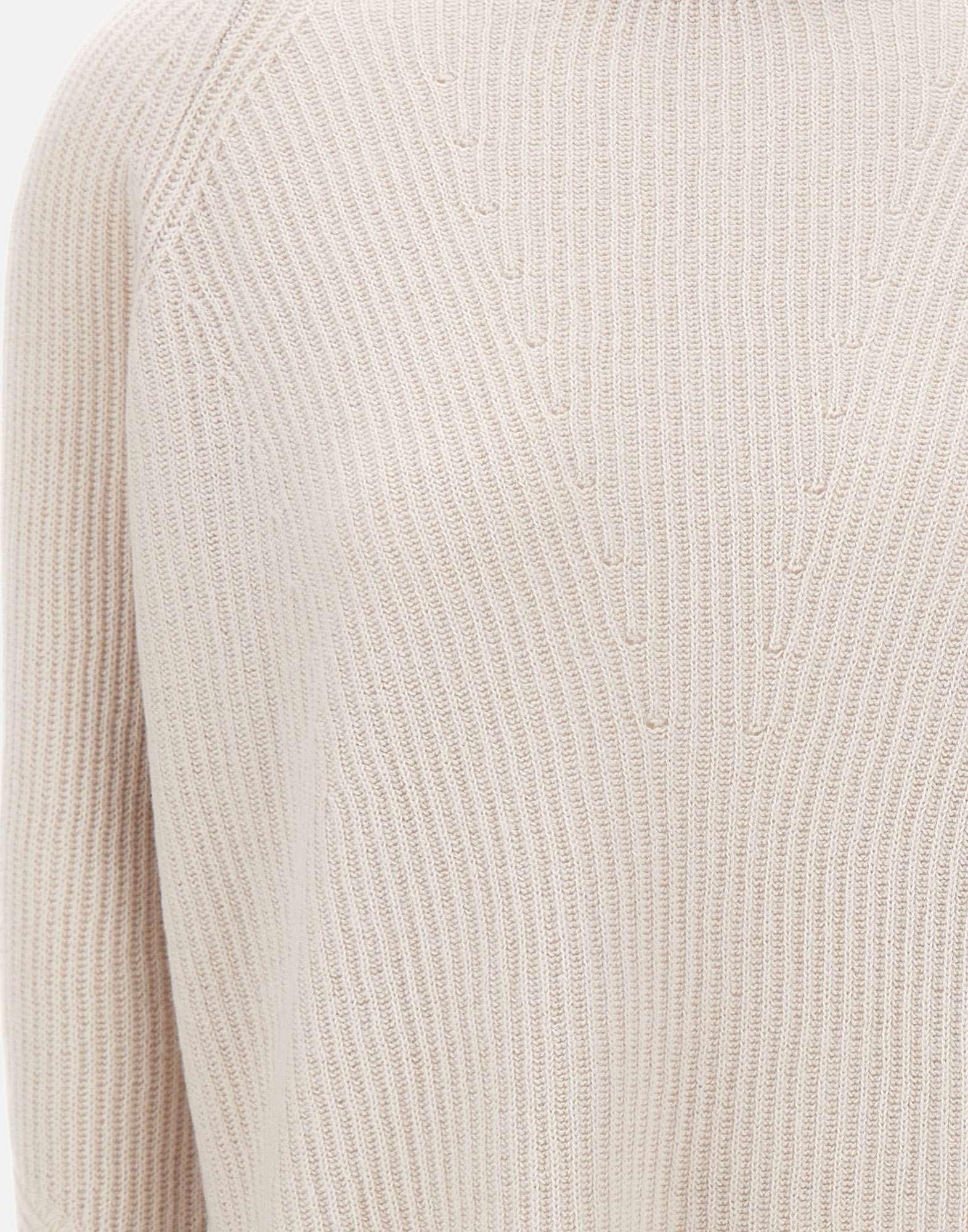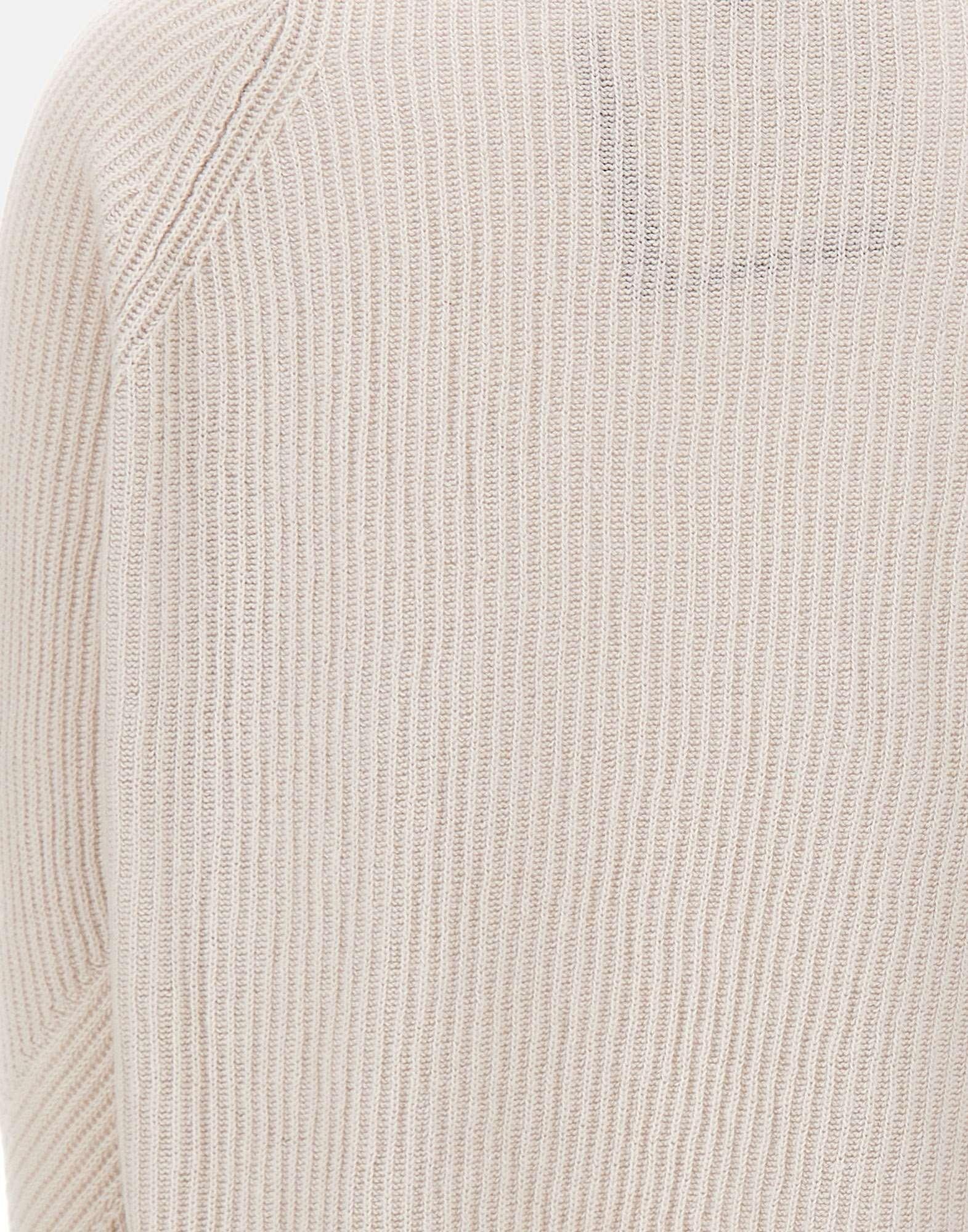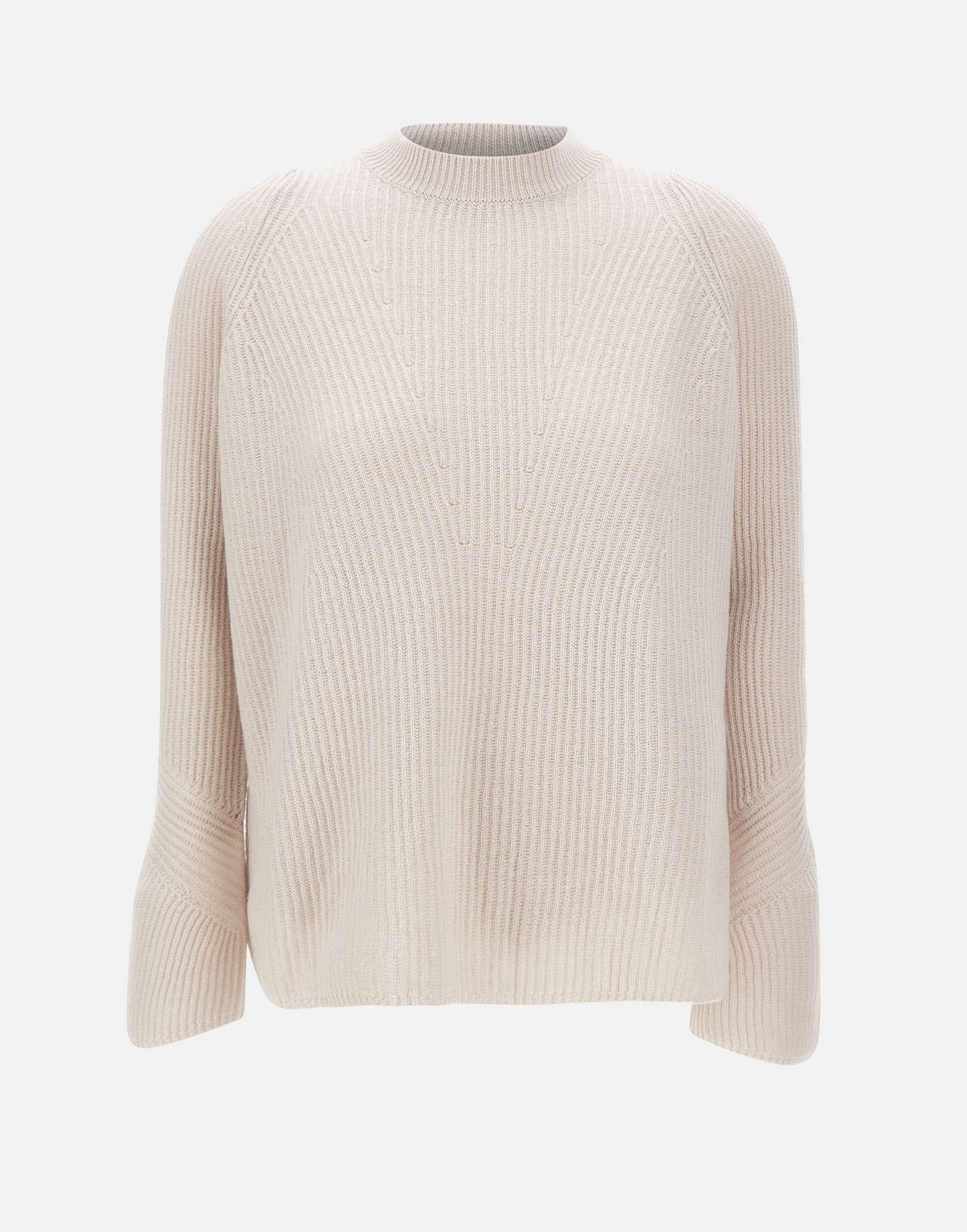 'S Max Mara "Molveno" sweater, ecrù color, pure wool yarn, flared fit, crew neck, long raglan sleeves, straight hem, ribbed weave, relaxed fit