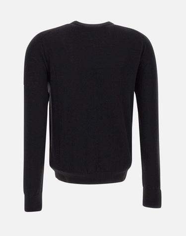 Sun68 women's "Round Neck Cardigan" black wool and cotton, long sleeves, crew neck, front closure with matching buttons, finished with ribbed edges and cuffs with side slits. Embellished with an embroidered logo, it has a regular fit, perfect for a casual and versatile look.