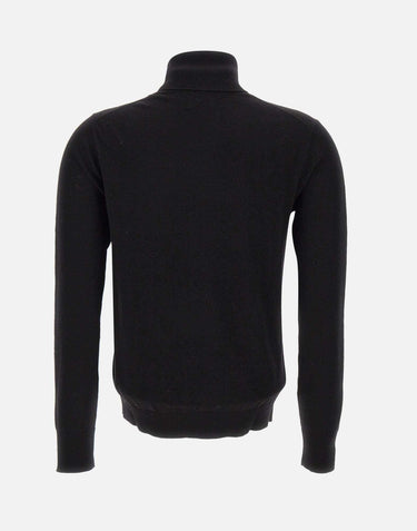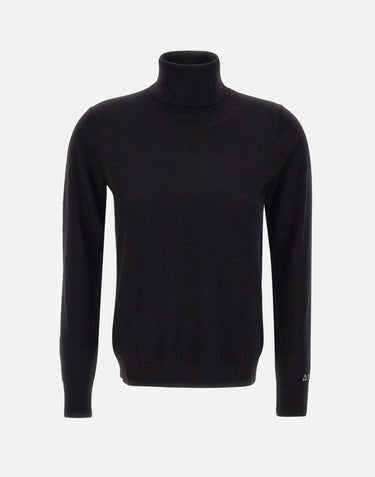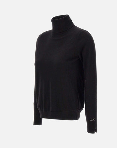 Sun68 women's "Turtle Neck Basic" sweater, black, wool and cotton, with long sleeves, a high neck, ribbed edges, and slit cuffs. Embellished with an embroidered logo, it's a regular fit, ideal for a casual and comfortable look.
