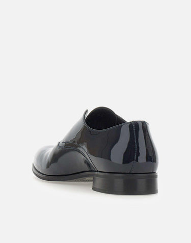 Carlo Pignatelli Flash patent leather loafers, blue color, exposed stitching, no laces, comfortable and regular fit, mini front logo label, 2cm heel, rubber sole, made in Italy