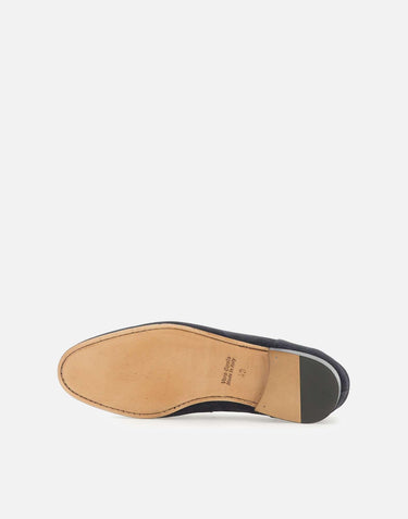 Duca Degli Abruzzi men's moccasins Vasco Kaleido 422, navy blue, suede, super soft and comfortable, mask with shiny silver metal decorative accessory, exposed handcrafted stitching, soft leather insole, leather sole, 2cm heel, made in Italy, regular fit