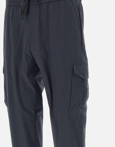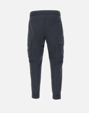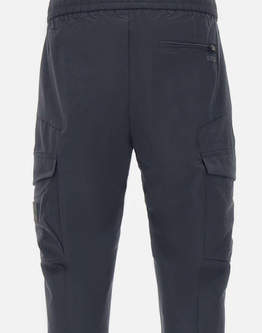 Boss "T_Urbanex-CargoLight" mens trousers in blue, crafted from lightweight stretch poplin with quick-dry technology. Featuring a regular waist with zip and drawstring closure, slanted front pockets and zipped back pocket. Modern tapered cut with 15cm stretch hem, ideal for everyday wear or travel.