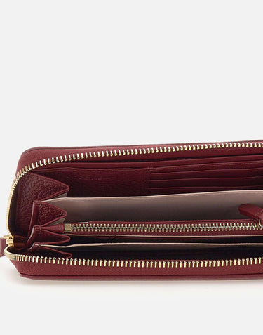 The Coccinelle "Dulse Soft" women's wallet is an elegant and functional accessory, designed for those seeking practicality without sacrificing style. Crafted from soft and refined burgundy leather, it is embellished with the discreet yet distinctive Coccinelle logo embossed on the front. Featuring a zip closure, it houses seven compartments, ideal for organizing cards, documents, and bills neatly and securely. Its large yet slim design makes it perfect for even the most compact bags. Dimensions: 18 × 10 × 3 cm.