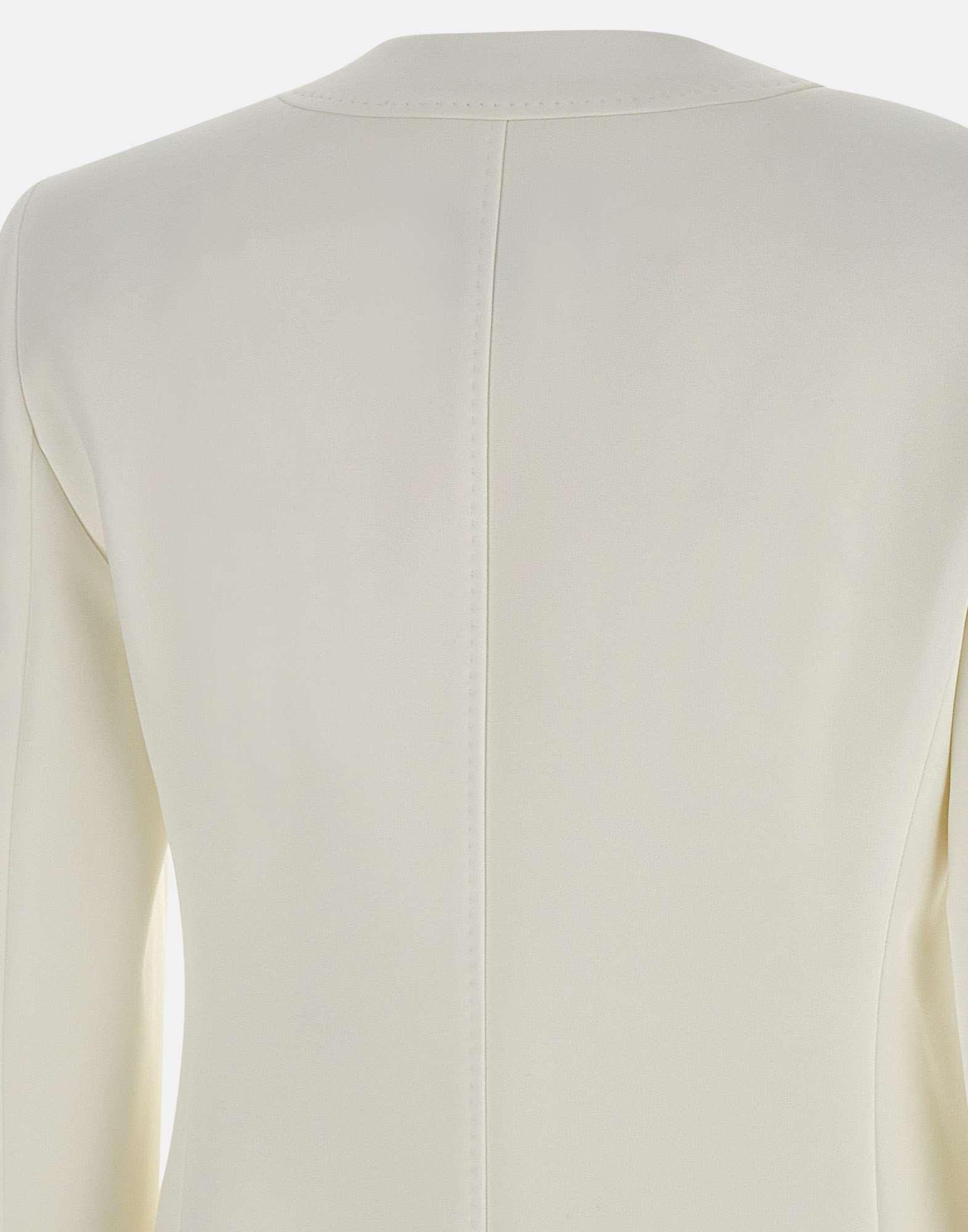 Max Mara Studio Yana cady Jacket white,round neckline, long sleeves, cropped cut at first hip, slightly rounded at front, four flap pockets with front button, silver plated, lined, knotted button front closure, regular fit. Dry cleaning recommended.