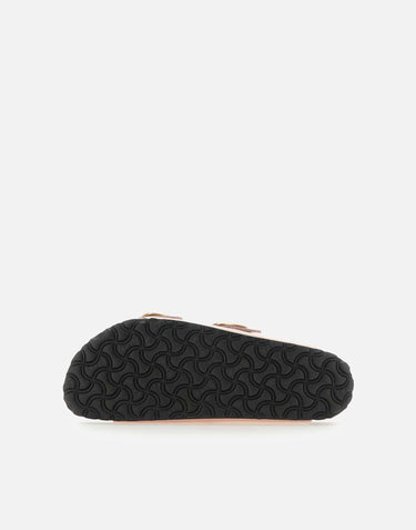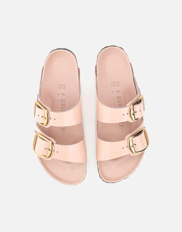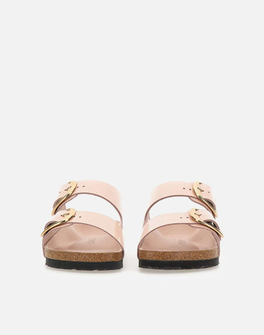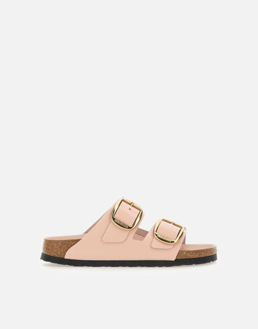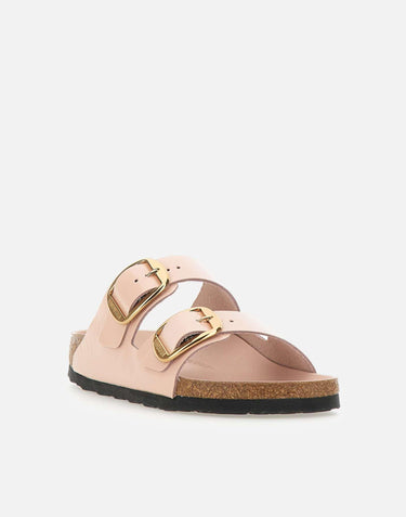 "Arizona Big Buckle" woman Birkenstock sandals, powder pink, anatomical cork and latex footbed, natural leather upper with lacquered finish,