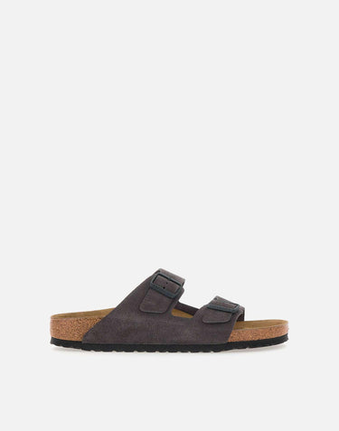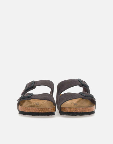 Birkenstok Arizona bs suede sandals, anthracite grey, timeless classic model, double adjustable strap with tone-on-tone logo, embossed logo on side, anatomically shaped footbed cork and latex, suede insole, regular fit. Small size (as indicated on brand's official website), an extra size is recommended.
