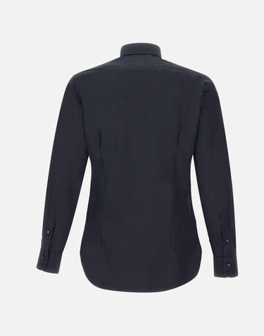 Barba men's cotton shirt, midnight blue colour, classic collar, tone-on-tone mother-of-pearl effect button closure, buttoned cuffs, rounded hem, slim fit. Made in Italy.Hand sewn.