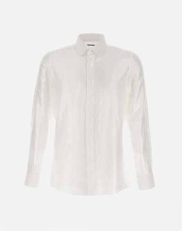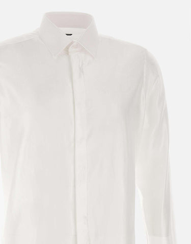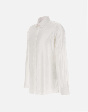 Carlo Pignatelli "Ray" men's formal cotton and viscose shirt, white, classic collar, concealed matching button fastening, one button cuffs, slim fit, ideal for spring and summer seasons. Made in Italy.