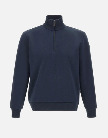 The Colmar Originals cotton blend sweatshirt combines everyday comfort with a casual, sporty style. Crafted in navy blue, it features a high zip neck, ribbed cuffs and hem for a snug, comfortable fit. The Colmar logo on the left sleeve adds a distinctive touch, while the fleece lining ensures warmth and softness on cooler days.