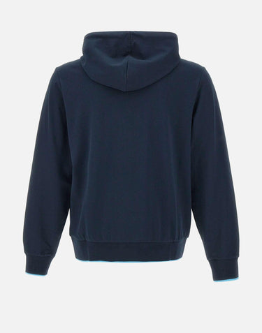 Stretch piquet cotton Sun68 men's "Piquet small stripes" sweatshirt, blue, hood with drawstring and silver ends, long sleeves, side pockets with zip, fill zip closure, embroidered logo on chest, ribbed edges with contrasting color profile, brushed interior, regular fit