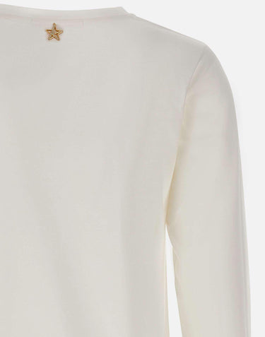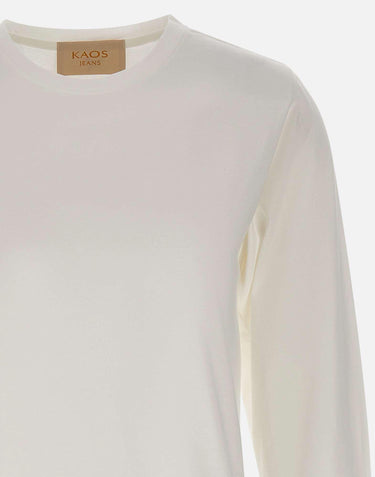Kaos white cotton t-shirt, basic construction and design, perfect as an undershirt, long sleeves, crew neck, metal star logo on back, comfortable fit.