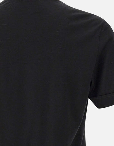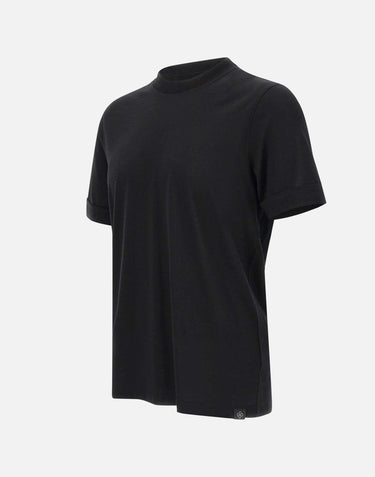 Mens Gran Sasso extra-fine wool t-shirt, presented in black and part of Luxury Collection. Crafted from premium fabric for a soft feel and superior comfort, featuring short sleeves, ribbed crew neck, and small logo detail at the hem. Regular fit. Made in Italy.
