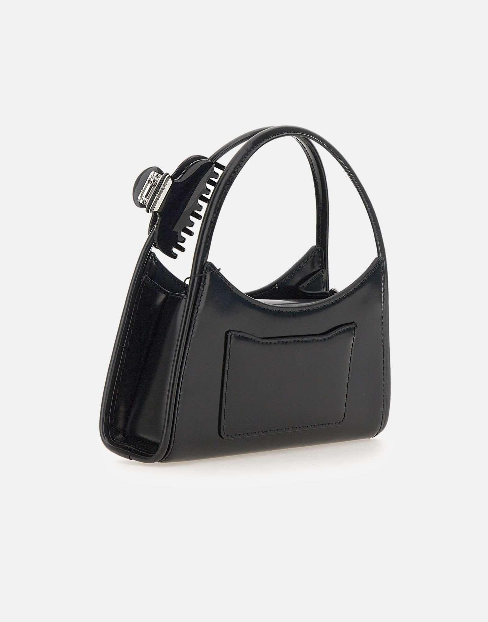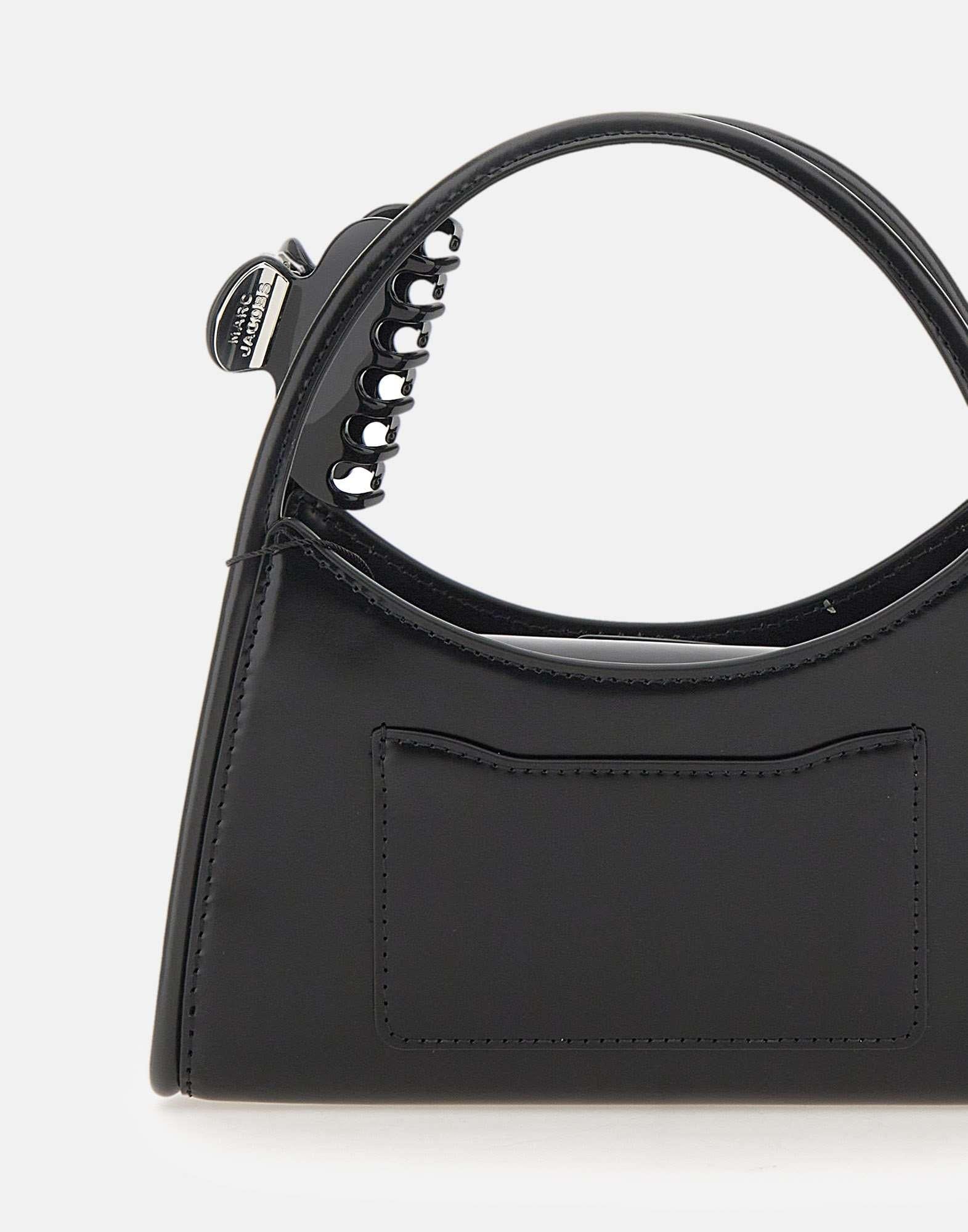"The Glam Claw Clip" handbag Marc Jacobs, black, smooth leather, double top handles, silver metal logo, silver electroplating, adjustable and removable shoulder strap approx. 100 cm, magnetic closure, small card pockets inside, outside slip pocket. Hair accessory. Measurements: 22 x 20 x 7 cm. Dustbag included