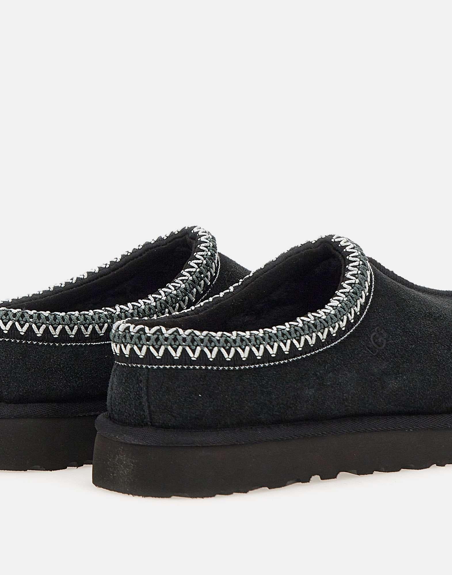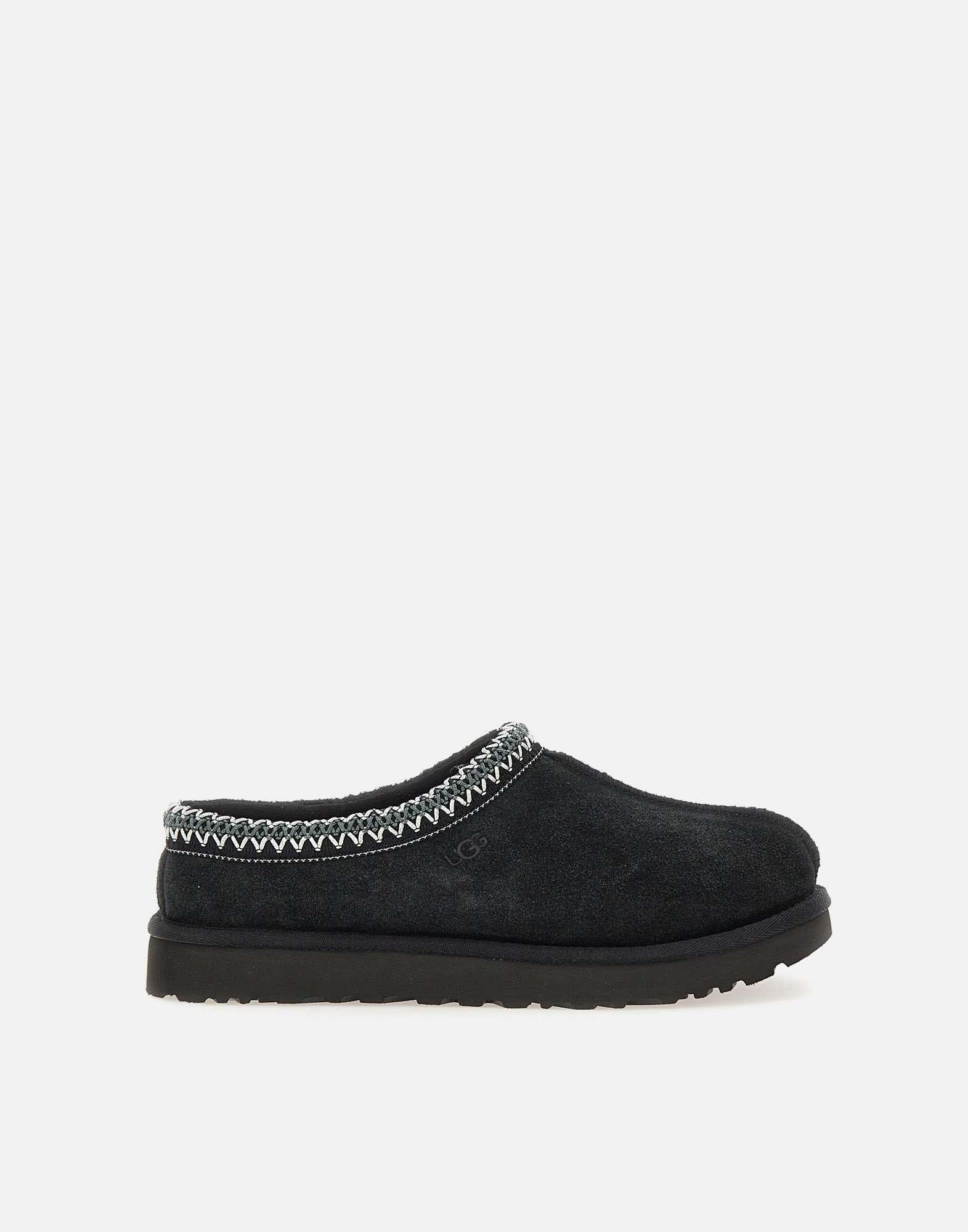 UGG "Tasman" women's suede ring leather sabot, black with contrasting profiles, UGG® braid embroidered on collar,sheep wool lining,UGGpure wool insole, nylon trim, ultra light Treadlite by UGG sole made with a responsible compound based on sugar cane foam 2cm high.