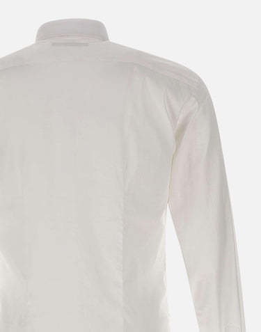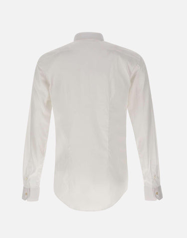 Camicia uomo Brian Dales in misto cotone, bianca, collo classico, chiusura con bottoni effetto madreperla, due bottoni sulle maniche, fondo stondato, slim fit. Made in Italy