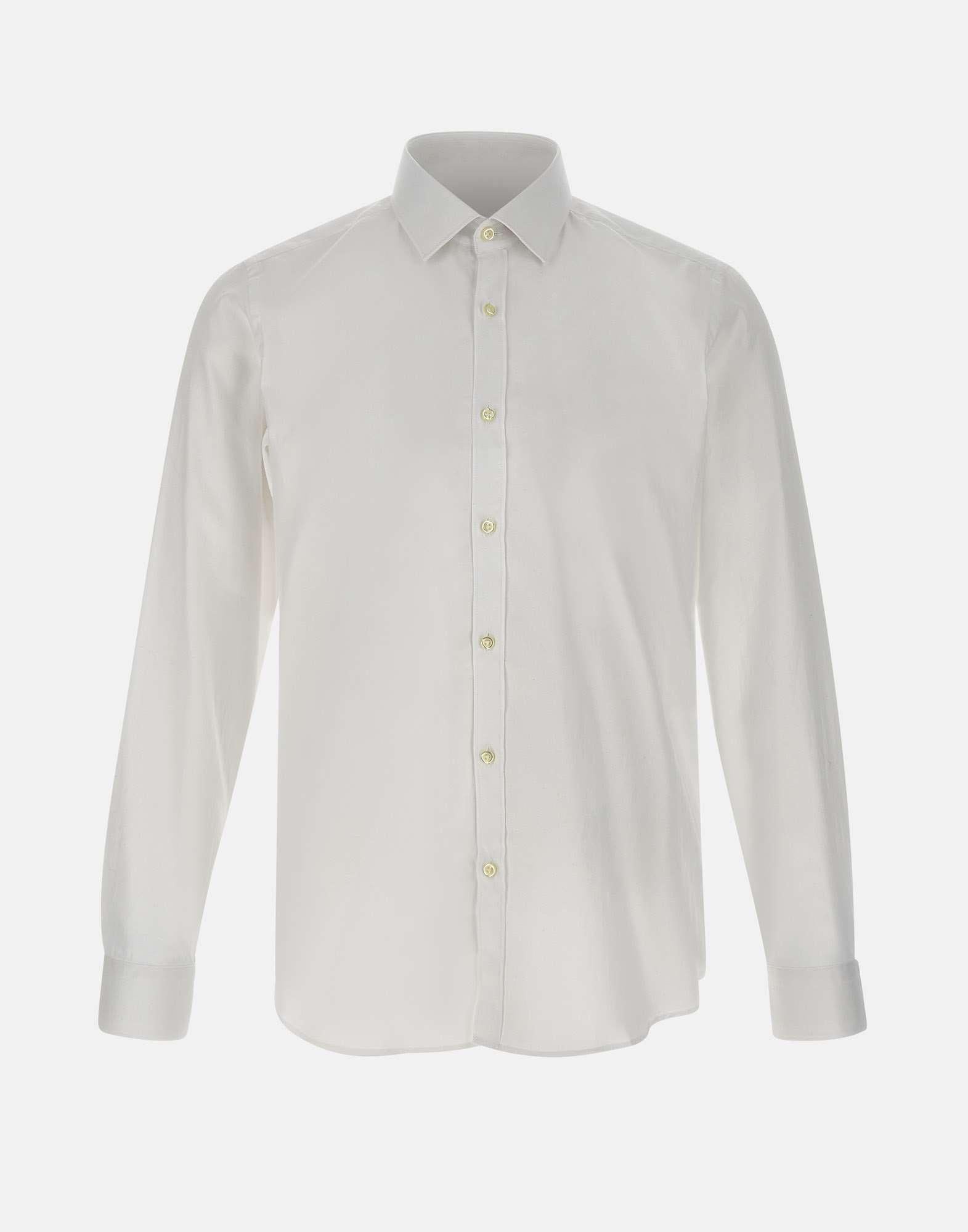 Camicia uomo Marchesani in cotone, colore bianco, maniche lunghe, collo classico, polsini con bottoni doppio uso, chiusura con bottoni effetto madreperla, slim fit.