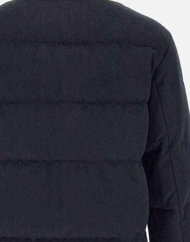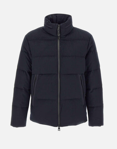 Piumino Duno "Theus" da uomo, proposto in blu e realizzato in lana tecnica e viscosa con finitura mano pesca per un look sofisticato. Imbottito in piuma naturale, garantisce traspirabilità ed eccellenti performance termiche. Caratterizzato da trapuntatura orizzontale e profili termonastrati per una migliore protezione dagli agenti atmosferici. Chiusura frontale con zip a due vie, tasche oblique con zip e pratiche tasche interne. Cappuccio inserito nel colletto per un design funzionale e minimal. Vestibilità regular.