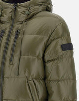 Piumino uomo Mackage "Victor R", verde oliva, realizzato in nylon riciclato e imbottito con piumino 100% certificato GRS, pensato per garantire protezione termica fino a -10°C. Dotato di cappuccio fisso con visiera antipioggia e coulisse regolabile, tasche sul petto e in vita con chiusura a zip, tasca interna a filetto, polsini antivento in misto lana e orlo regolabile. Chiusura frontale con zip integrale e logo in silicone "MACKAGE" sulla manica. Completamente foderato, lavabile in lavatrice. Vestibilità regolare.