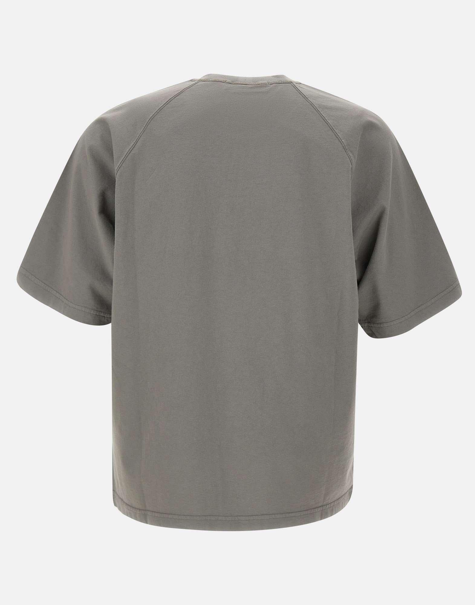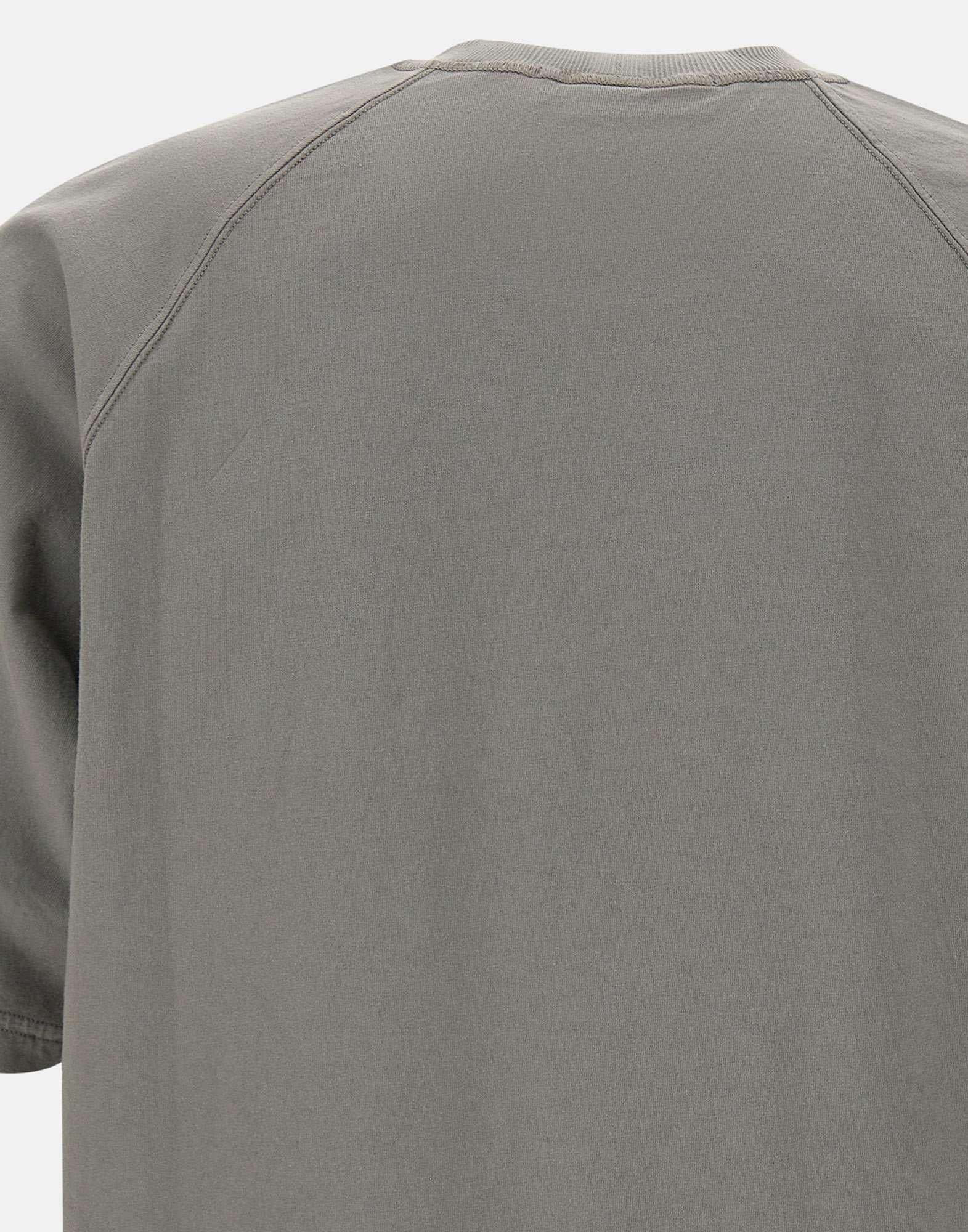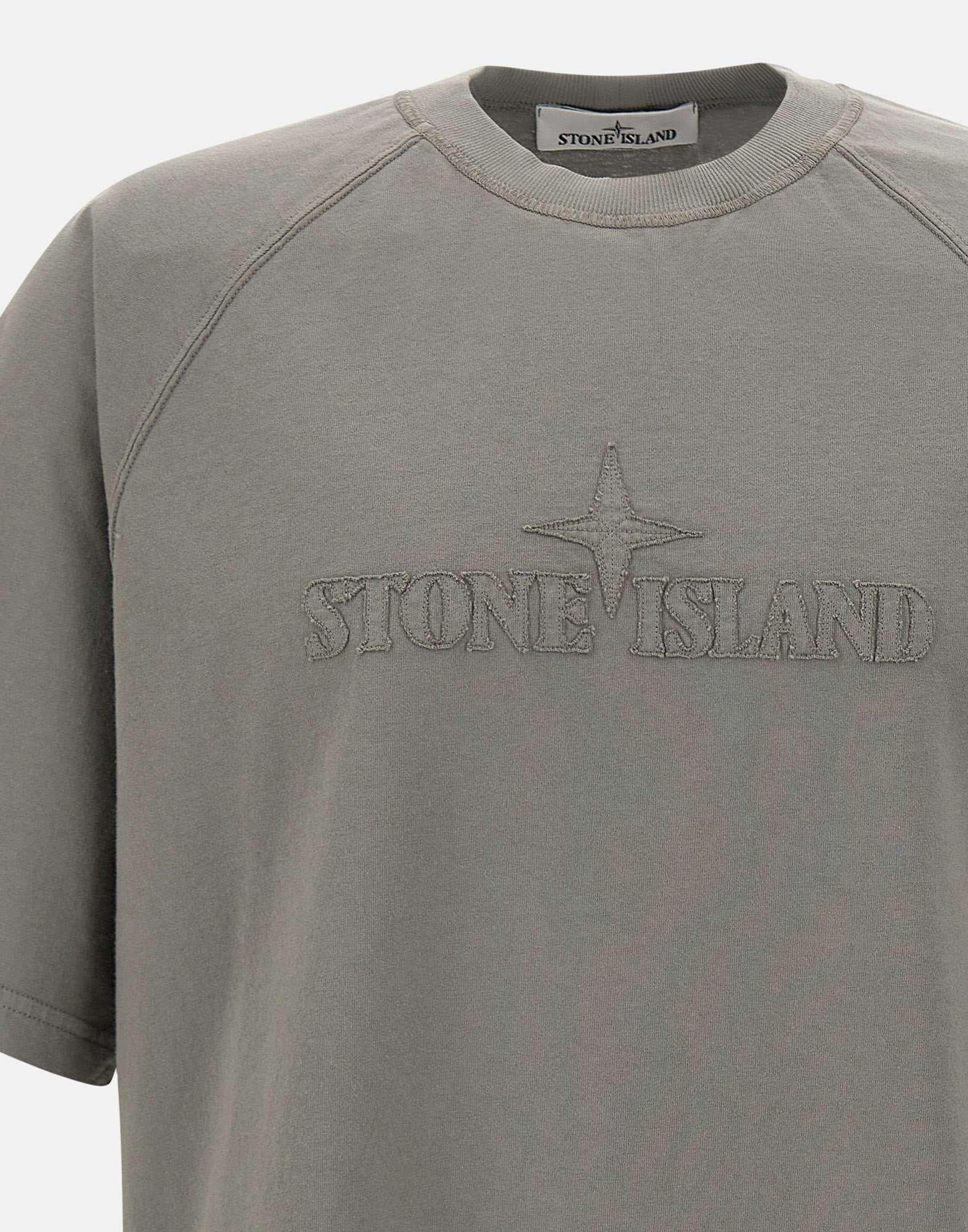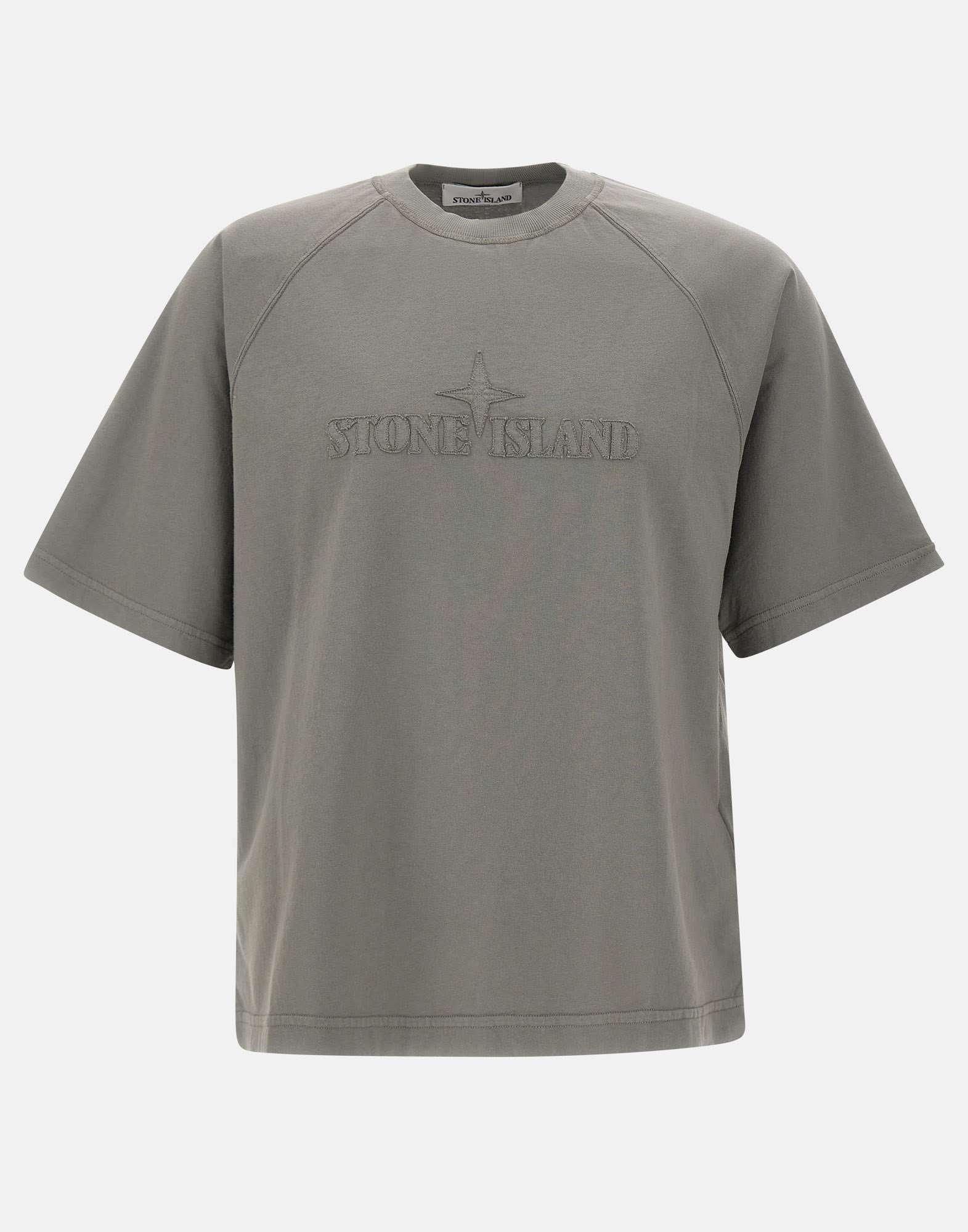 T-shirt uomo Stone Island in cotone, colore grigio, maniche corte, girocollo, tagli sulle spalle, maxi logo frontale, regular fit